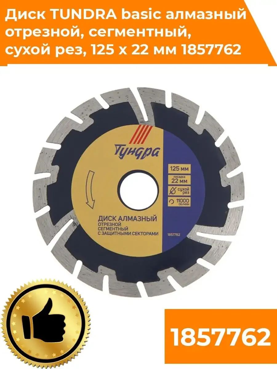 Диск алмазный отрезной сегментный по сухому резу марки ТУНДРА предназначен для работ с угловой шлифовальной машиной. Диск применяется для реза таких материалов, как бетон, кирпич и камень. Перед работой материал не требует водяного охлаждения, благодаря функции сухого реза. Алмазное напыление обеспечит чёткую, аккуратную и тонкую резку, не оставляя сколов и дефектов от перегрева. Специальные защитные сектора служат для лучшего отведения шламов во время работы.