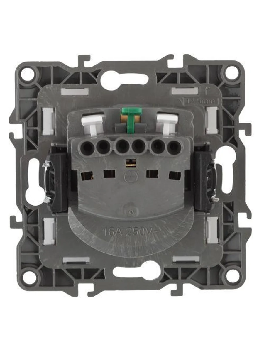 Розетка с заземлением серии Эра 12 скрытой установки механизм цвет белый 12-2101-01. Номинальные характеристики 16А 250В . Сделана из поликарбоната, оснащена автоматическими клеммами для быстрой и надёжной фиксации жил кабеля в механизме. Парные клеммы обеспечивают соединение шлейфом. Монтаж в подрозетник производится и на лапки, и на винты. Рамки приобретаются отдельно. Рамки Эра 12: 1 пост 12-5001-хх, 2 поста 12-5002-хх, 3 поста 12-5003-хх, 4 поста 12-5004-хх, 5 постов 12-5005-хх. Рамки Эра 12 Сатин: 1 пост 12-5101-хх, 2 поста 12-5102-хх, 3 поста 12-5103-хх, 4 поста 12-5104-хх, 5 постов - 12-5105-хх (хх - код цвета: 01-белый, 02-слоновая кость, 03-алюминий, 04-шампань, 05-антрацит, 06-чёрный, 07-ольха(белёный дуб-сатин), 08-вишня, 09-дуб, 10-венге, 11-сосна, 21-жёлтый, 22-оранжевый, 23-красный, 24-охра, 25-бордо, 26-лайм, 27-зелёный, 28-голубой, 29-синий).
