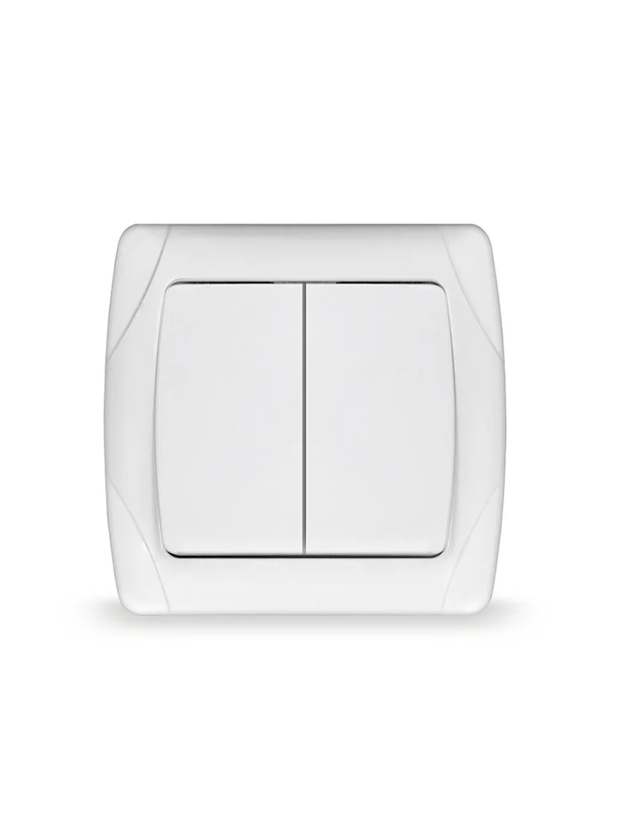 • НАЗНАЧЕНИЕ Выключатель 2-клавишный это двухпозиционный коммутационный аппарат с замыкающими (нормально-разомкнутыми) контактами, предназначенный для работы в сетях с напряжением до 1000 вольт, не предназначенный для отключения токов короткого замыкания, без специальных устройств дугогашения, местного управления, с ручным приводом. • ОБЛАСТЬ ПРИМЕНЕНИЯ В основном применяются для включения и выключения освещения в бытовых и производственных условиях. • ПРИНЦИП ДЕЙСТВИЯ Принцип действия основан на коммутации контактов механическим способом (нажатием) , при этом положения коммутации фиксированы и позволяют находится в этом режиме достаточно долго, вплоть до следующего воздействия. • ДОПОЛНИТЕЛЬНЫЕ ПРИНАДЛЕЖНОСТИ ИЛИ АКСЕССУАРЫ