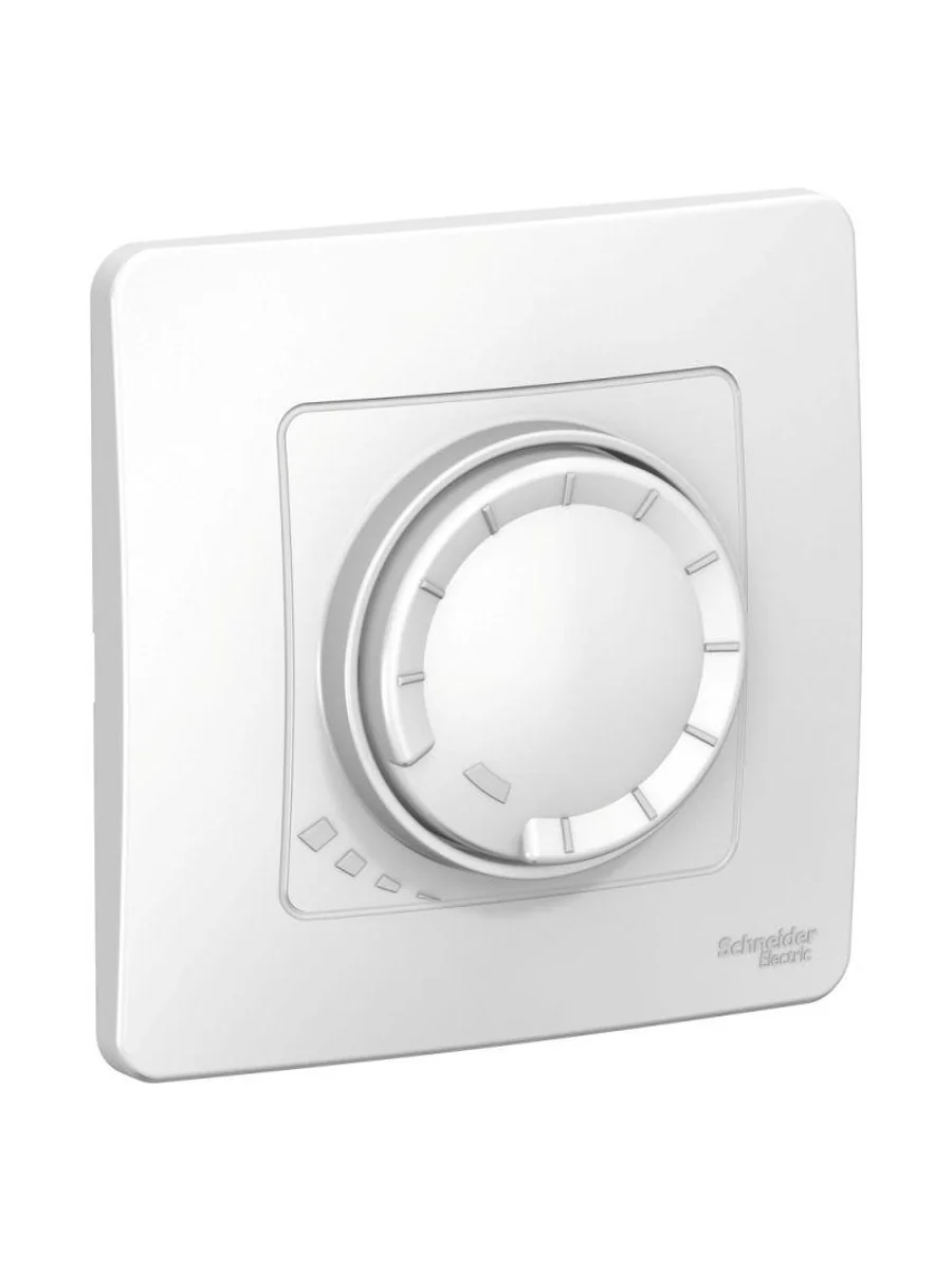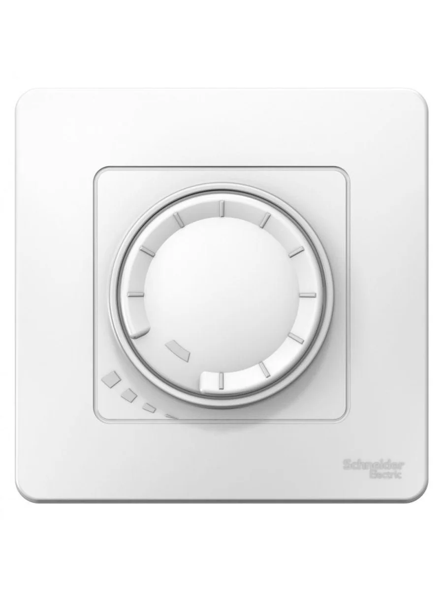 Светорегулятор (диммер) Systeme Electric (ранее Schneider Electric) BLANCA (белый, скрытой установки) поворотно-нажимной универсальный предназначен для сетей 230В, потребление 5-150Вт для светодиодных ламп и 10-400Вт для ламп накаливания и галогенных. Диммер изготовлен из ABS-пластика, прост в установке и удобен в применении.
