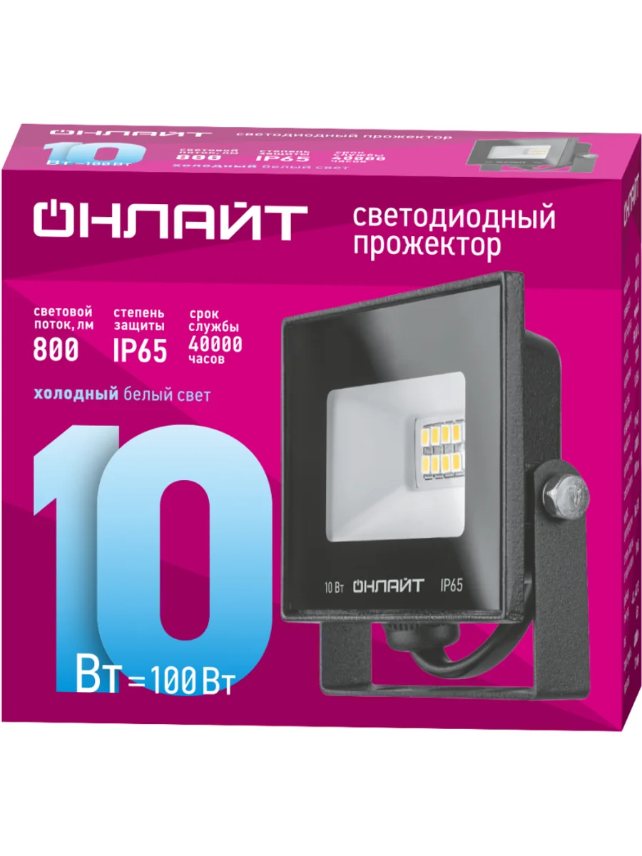 Прожектор 71 688 OFL-10-6K-BL-IP65-LED ОНЛАЙТ 4670004716885 – светодиодное средство освещения. Представляет собой современную и актуальную замену традиционных галогенных прожекторов. Корпус изготовлен из алюминия, черного цвета, рассеиватель из прозрачного стекла, с глянцевым отражателем. Прожектор хорошо предохранен от попадания внутрь пыли и влаги (IP65) и применяется при освещении фасадов, витрин, билбордов, щитов и др. сооружений.