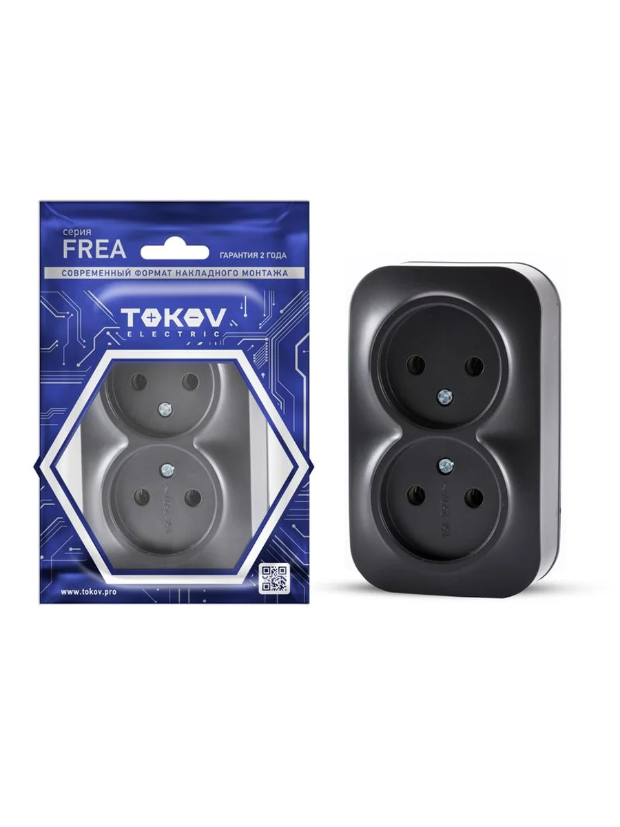 Розетка 2-м ОП Frea 16А IP20 250В без заземл. АБС-пластик карбон TOKOV ELECTRIC TKE-FR-R2-C14 - купить в KeepBuilding | KeepBuilding