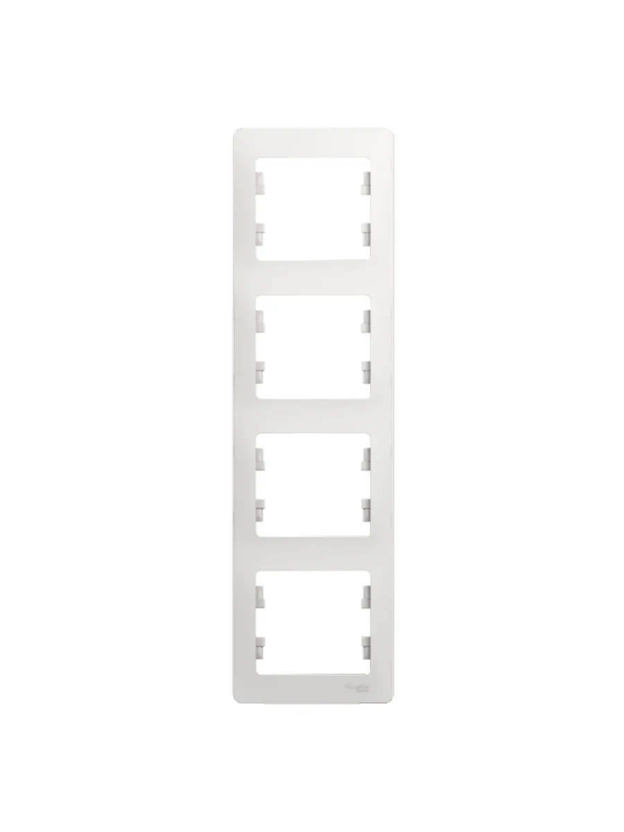 Рамка Systeme Electric (ранее Schneider Electric) серии Glossa (цвет белый) четырёхместная. - Устанавливается в вертикальном положении. - Выполнена из материала PС+ASA, стойкого к УФ-излучению и появлению царапин. - Позволяет гармонично вписать электроустановочное изделие в интерьер помещения.
