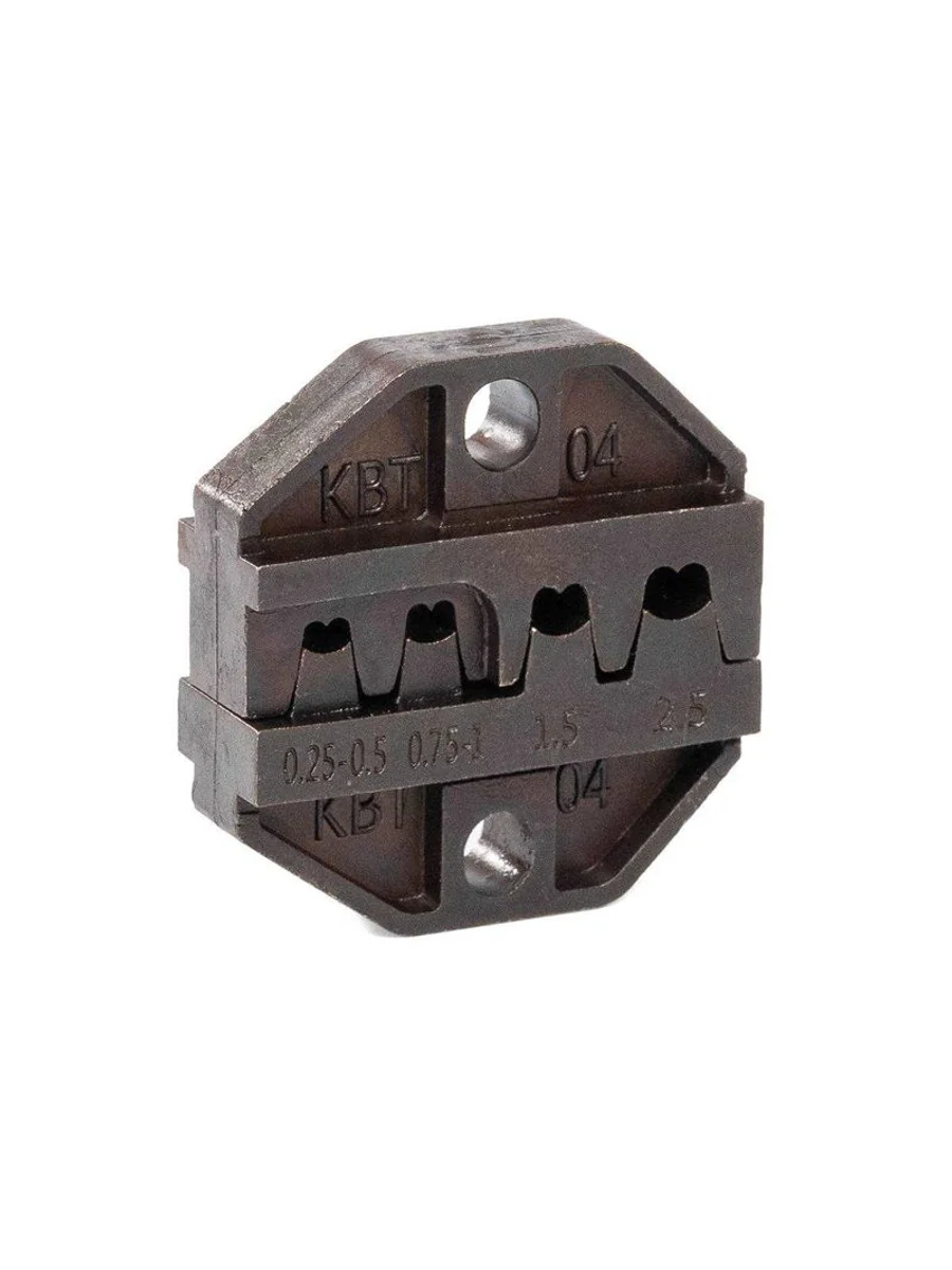 • Сменные матрицы для опрессовки неизолированных разъемов и наконечников (автоклемм) под двойной обжим по жиле и изоляции РП-М и РП-П (шириной 2.8; 4.8; 6.3; 7.5 мм), НК, ГС сечением 0.25 - 2.5 мм2 • Профиль обжима лепестковый двухконтурный • Совместимость: пресс-клещи СТК, СТО, СТВ, ПКЭ-01, ПКП-01