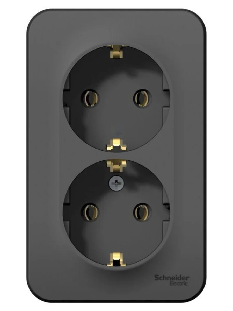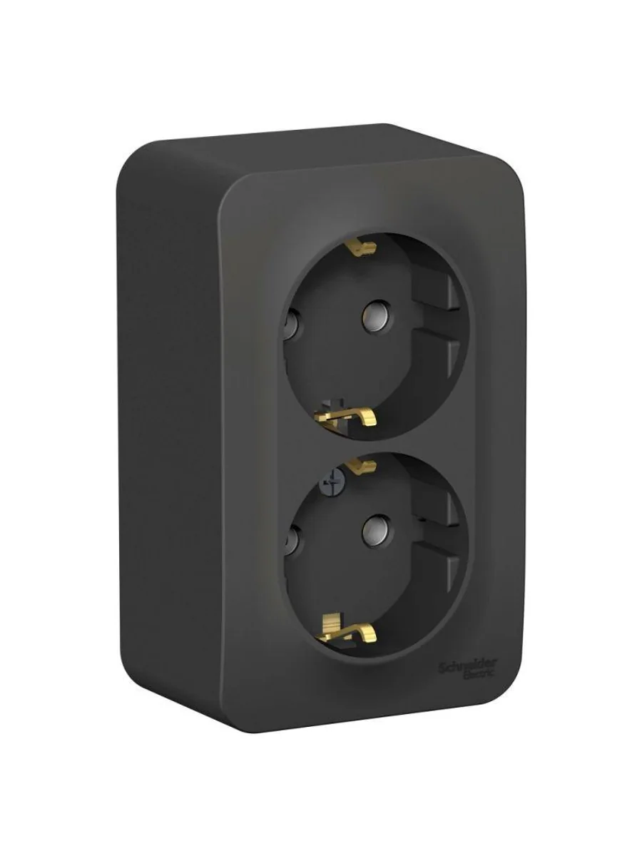 Розетка Systeme Electric (ранее Schneider Electric) BLANCA (антрацит, открытой установки) двухместная, без шторок, с заземлением и изолирующей пластиной предназначена для сетей до 250В, на ток до 16А. Двухместная розетка позволяет подключить два устройства в одном месте. Заземление обеспечивает безопасность при косвенном прикосновении. Она изготовлена из ABS-пластика, проста в установке и удобна в применении.