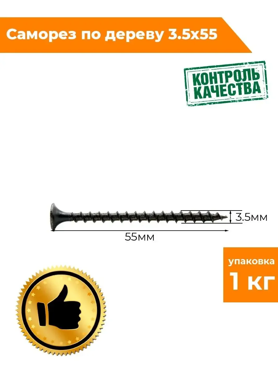 Саморезы по ГК кр.резьба (по дереву, ред.шаг) 3,5х55 оксид. Саморез универсальный гипсокартон-дерево, фосфатированный, защищен от коррозии. Спектр назначения и использования огромный, от бытового до строительного. Легко закручиваются и имеют головку под шлиц PH2. Длина, мм: 55;Диаметр, мм: 3,5. В упаковке 1кг.