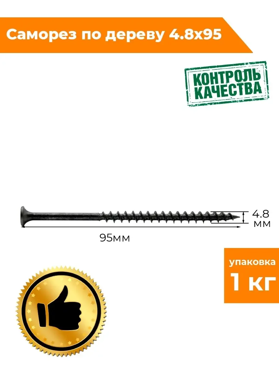 Саморезы по ГК кр.резьба (по дереву, ред.шаг) 4.8х95 оксид.Саморез универсальный гипсокартон-дерево, фосфатированный, защищен от коррозии. Спектр назначения и спользования огромный, от бытового до строительного. Легко закручиваются и имеют головку под шлиц PH2. Длина, мм: 95;Диаметр, мм: 4,8. В упаковке 1кг.