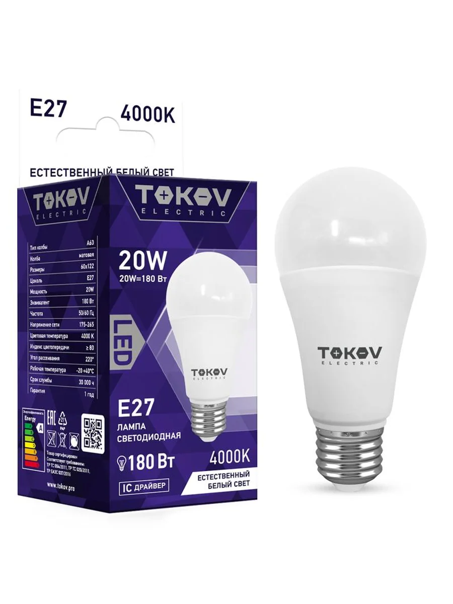 Лампа светодиодная 20Вт А60 4000К Е27 176-264В TOKOV ELECTRIC TKE-A60-E27-20-4K - купить в KeepBuilding | KeepBuilding