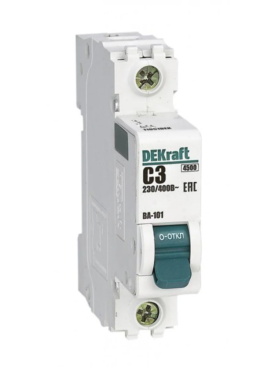 Автоматический выключатель серии ВА-101 Dekraft; 1P; номинальный ток 3 А; характеристика С; отключающая способность 4,5 кА. 5 монолитных заклепок повышают прочность корпуса аппарата. Сплошная лицевая панель обеспечивает безопасность эксплуатации аппарата. Боковые каналы охлаждения повышают стабильность работы при высоких температурах окружающей среды. Есть возможность установки дополнительных аксессуаров с левой стороны устройства. Аппарат на 100% совместим с корпусами Dekraft и Systeme Electric.
