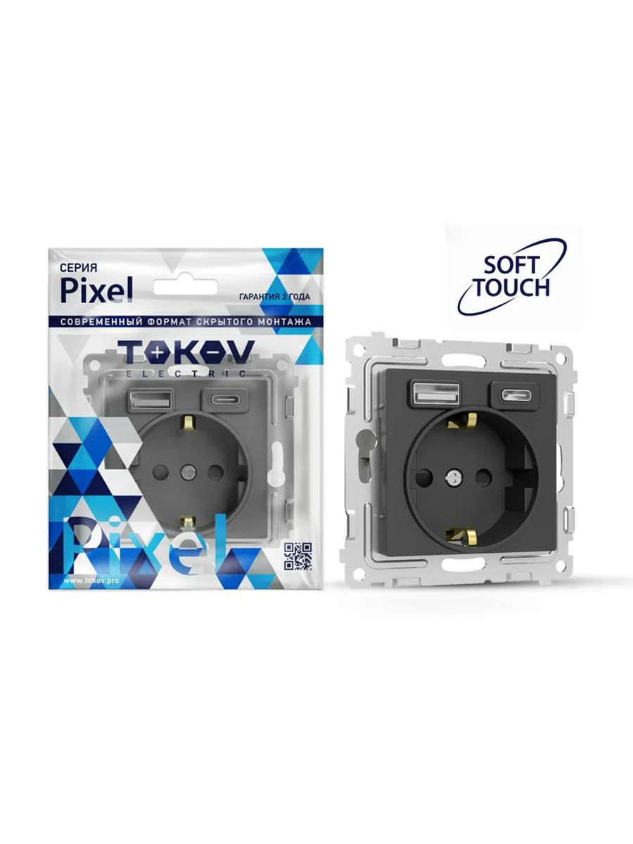 Розетка 1-м СП Pixel IP20 с заземл. с 2-мя заряд. устр. USB тип A+C механизм карбон TOKOV ELECTRIC TKE-PX-R1U2AC-C14 - купить в KeepBuilding | KeepBuilding