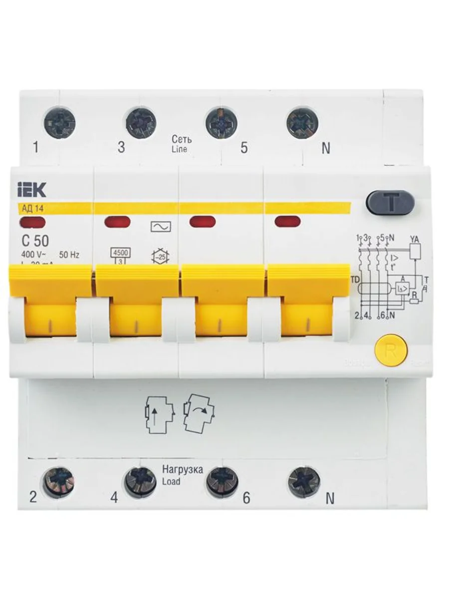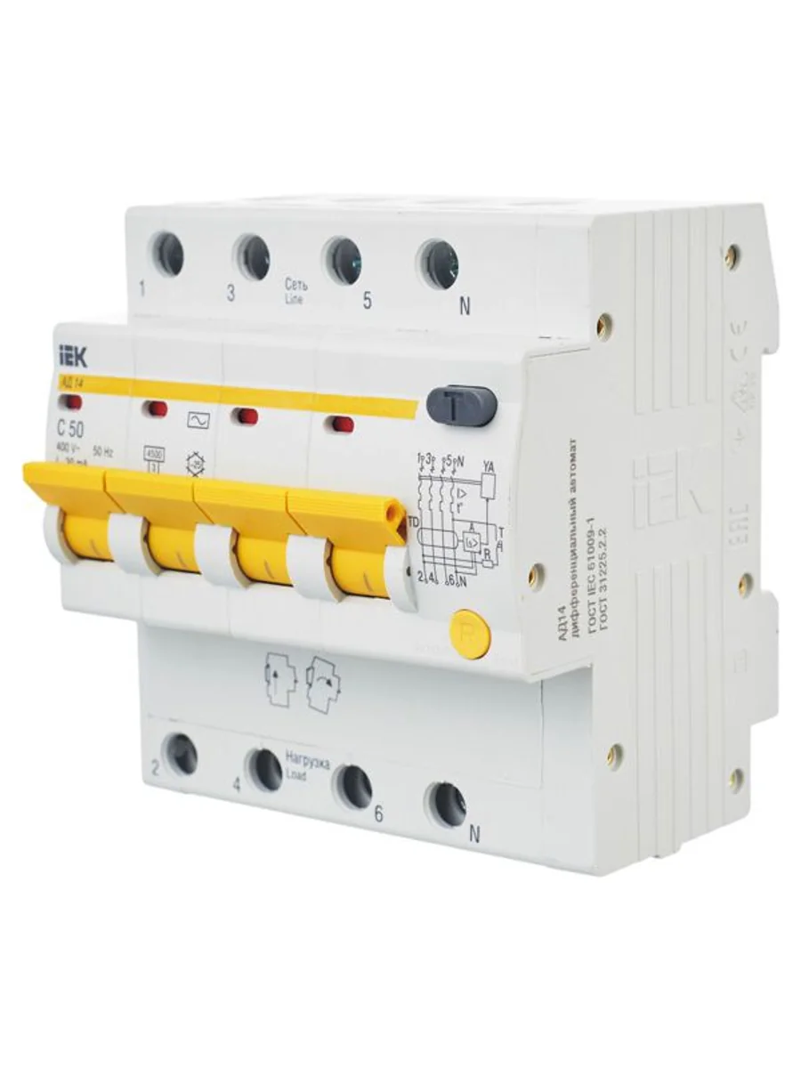Выключатель автоматический дифференциального тока 4п C 50А 30мА тип AC 4.5кА АД-14 KARAT IEK MAD10-4-050-C-030 - купить в KeepBuilding | KeepBuilding