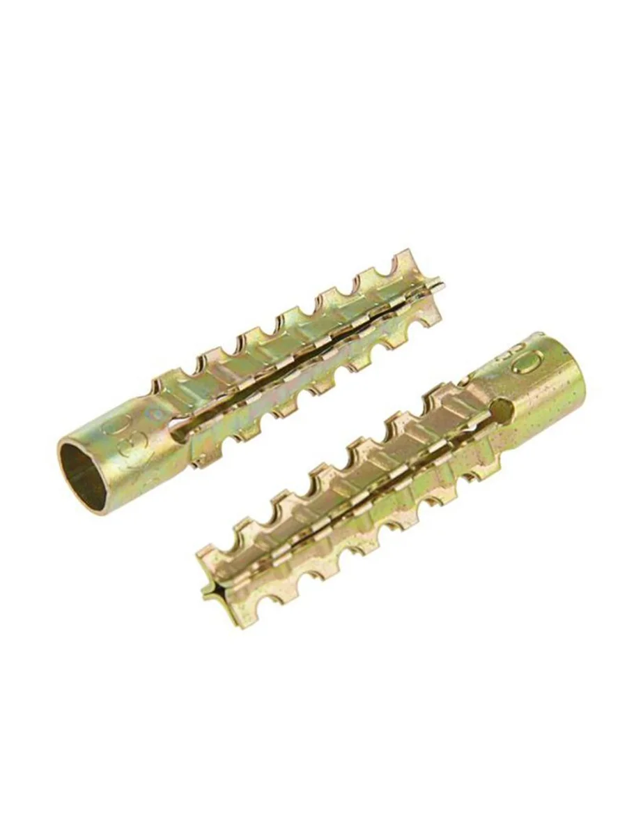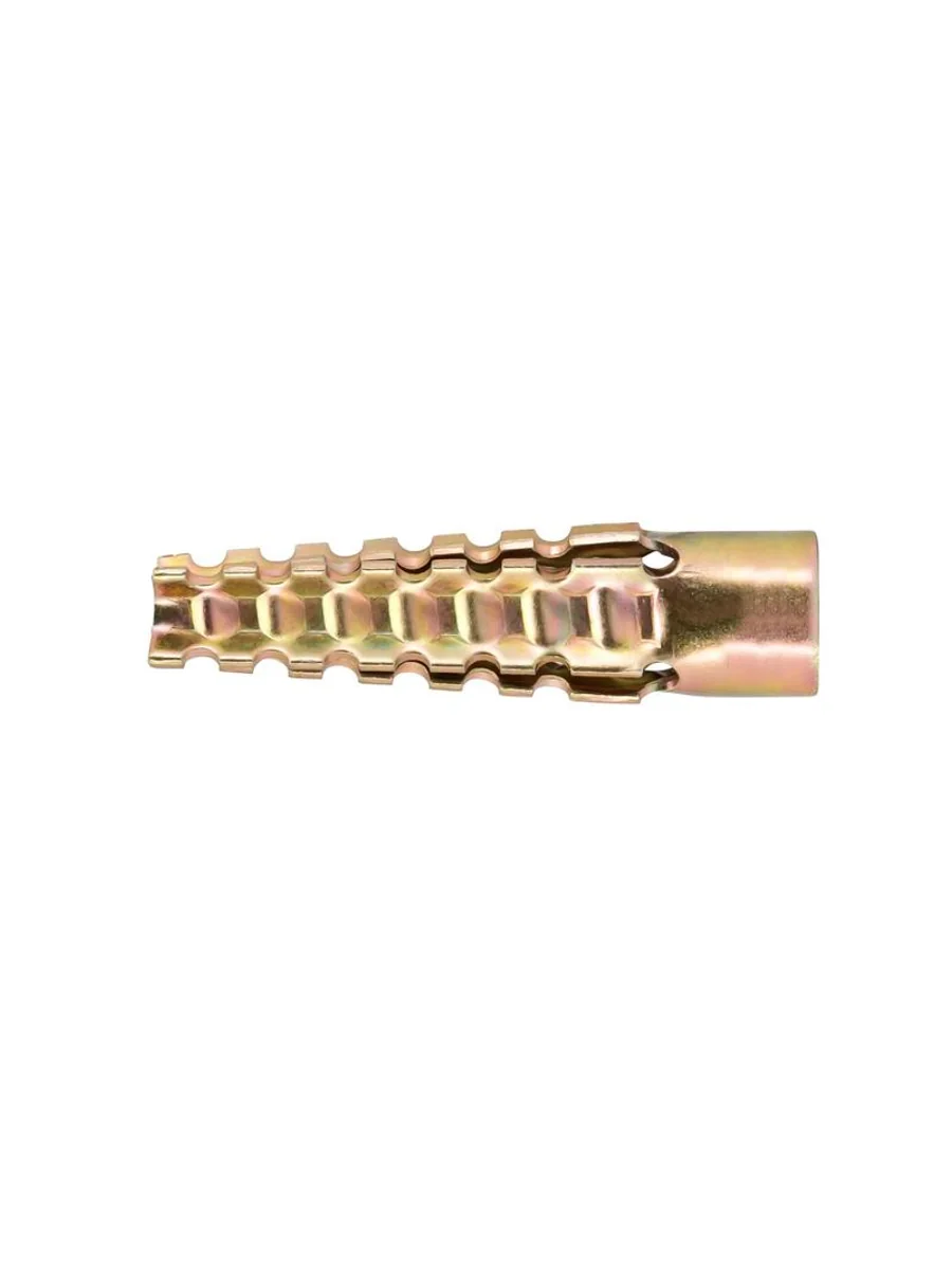 "Область применения: крепление металлических кронштейнов, направляющих для фиксации элементов трубопроводов и систем вентиляции, кабельных каналов, оконечных электротехнических устройств в полнотелые и пустотелые материалы основания. Материал применения: ячеистые виды бетона (газобетон, пенобетон, керамзитобетон), полнотелый и пустотелый кирпич, пустотелые шлакобетонные блоки. Материал: углеродистая сталь с антикоррозионным цинковым покрытием. Особенности: конструкция дюбеля имеет 4-х сегментную распорную часть с внешними зубцами, благодаря которым обеспечивается высокая несущая способность в слабых видах основания. За счет острых зубцов дюбель не проворачивается в мягком материале основания при вкручивании в него крепежа. Дюбель выполнен из металла, поэтому его можно применять в пожароопасных зонах. Допускается устанавливать без предварительного сверления в легкие ячеистые бетоны. Позволяют производить быстрой монтаж в таком виде основания."