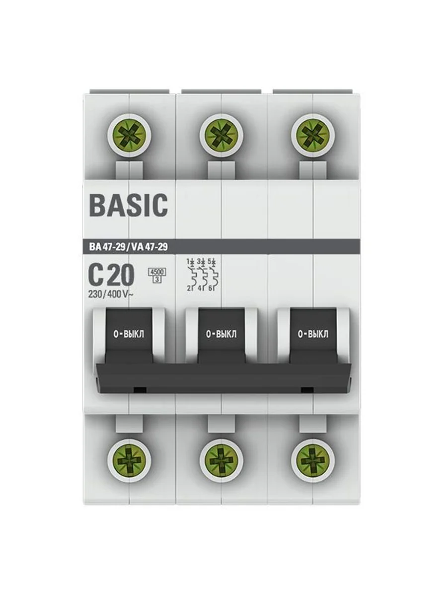 Выключатель автоматический модульный 3п C 20А 4.5кА ВА 47-29 Basic EKF mcb4729-3-20C - купить в KeepBuilding | KeepBuilding