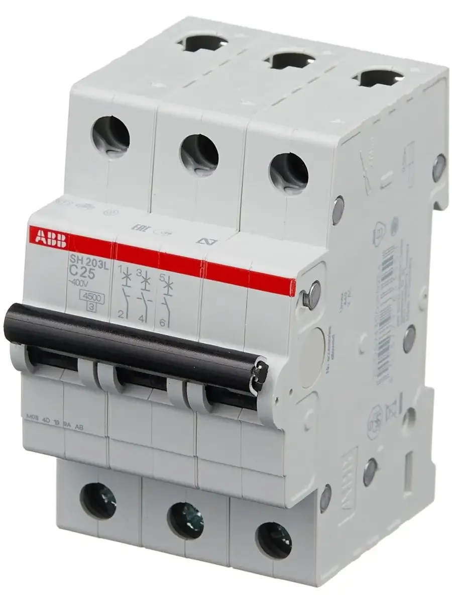 ABB Выключатель автоматический трехполюсный 50А С SH203L 4.5кА (SH203L C50) от российского производителя предназначен для надежной многоразовой защиты однофазных электросетей с напряжением 230/400 В от токов короткого замыкания и перегрузки. Данный однополюсный автомат подключается в разрыв фазного провода и закрепляется на Din-рейку. В случае перегрузки либо короткого замыкания электрической цепи, автомат отключается, предотвращая возгорание электропроводки. Устройство рассчитано на подключение в сеть бытовых электроприборов, суммарная нагрузка которых не превышает 16 А.Преимущества:защищает электроприборы от выхода из строя