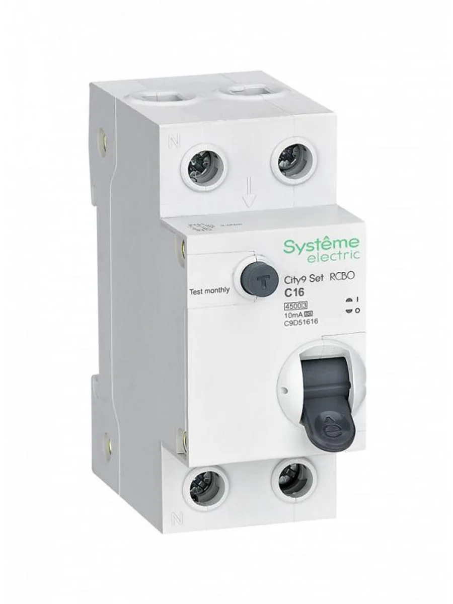 Автоматические выключатели дифференциального тока (АВДТ) серии City9 Set Systeme Electric,1P+N, номинальный ток 16 А, характеристика С, Icn = 4.5 кА, ток утечки 10 мА, тип А. АВДТ применяется в электрических сетях напряжением 230В. Предназначен для защиты сети от перегрузок, людей от поражения электрическим током и токов короткого замыкания. Уставка по току утечки 10 мА обеспечивает гарантированную защиту людей при прямом прикосновении. Кнопка тест обеспечивает проверку работоспособности аппарата. Крепление на DIN-рейку шириной 35 мм. Безопасные клеммы.