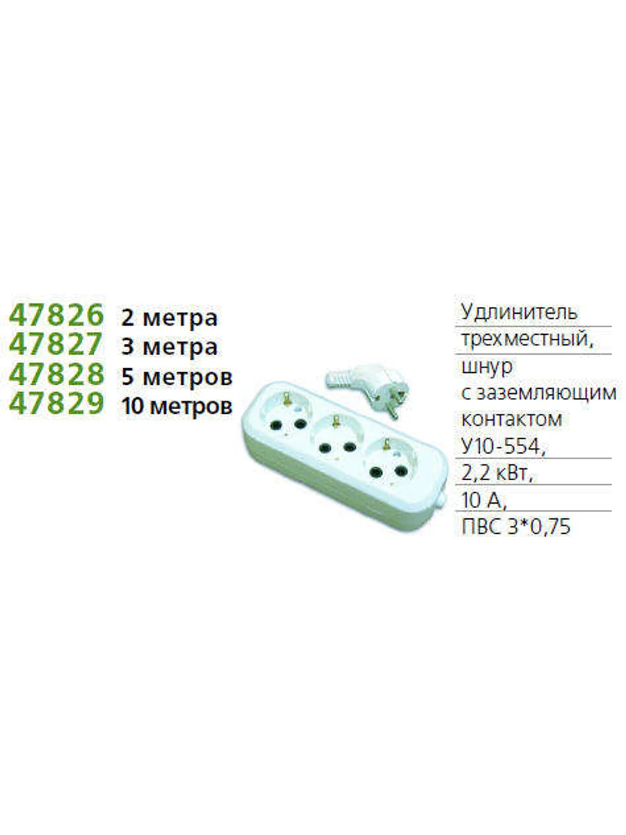 Удлинитель 3х2м с заземл. 10А IP20 У10-554 ПВС 3х0.75 UNIVersal 554-02 - купить в KeepBuilding | KeepBuilding