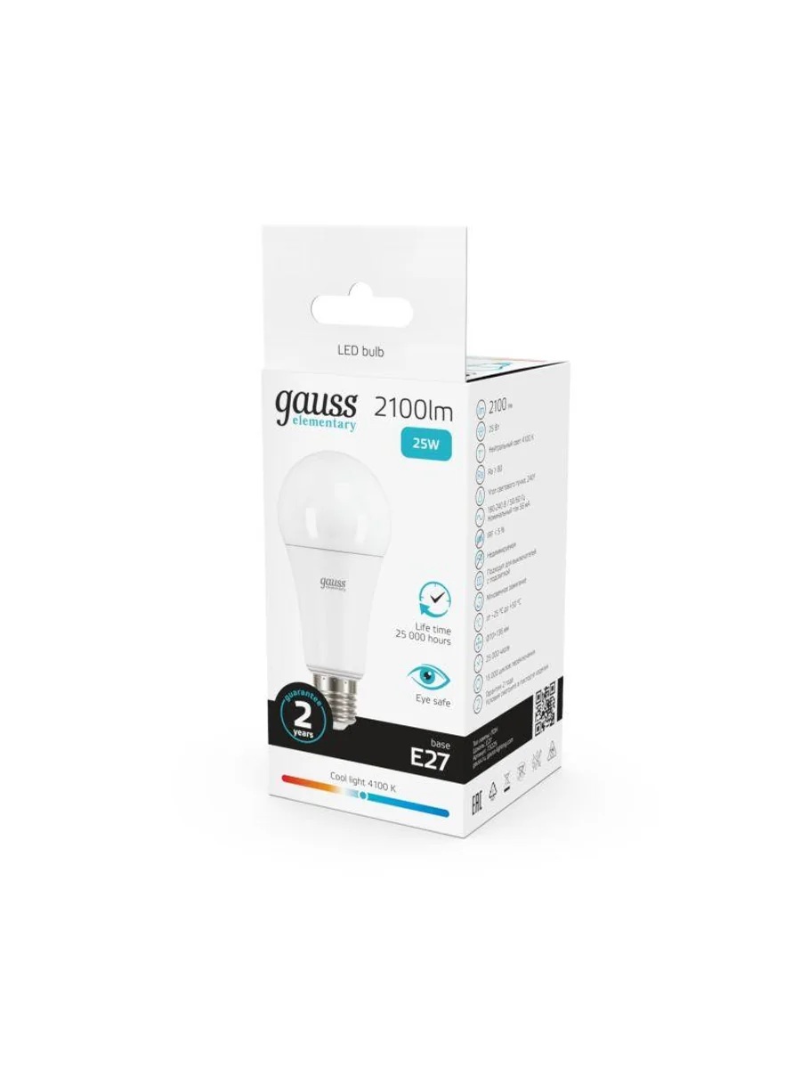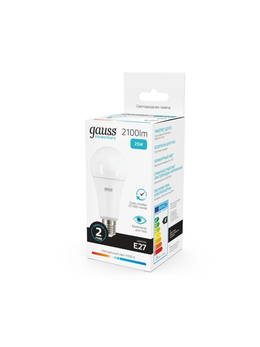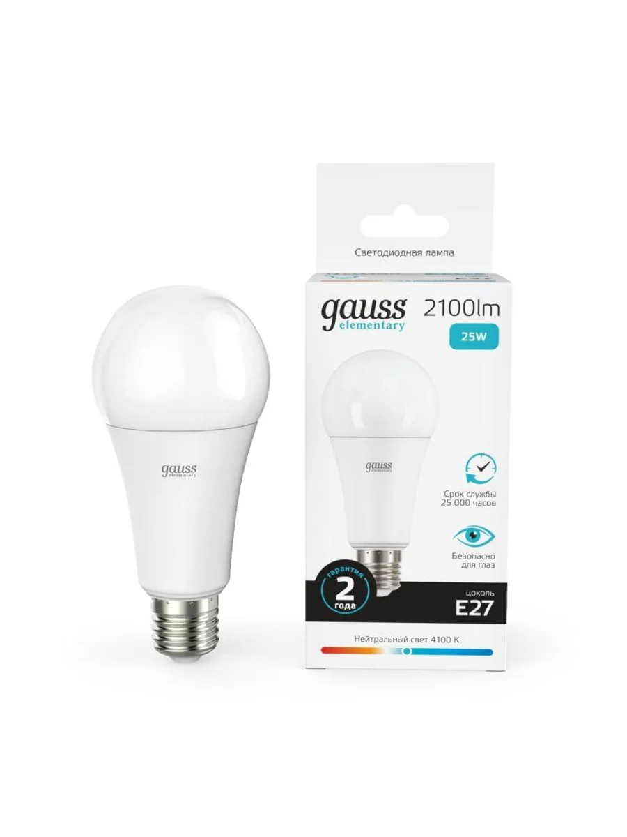 Лампа светодиодная Elementary 25Вт A70 грушевидная 4100К нейтр. бел. E27 2100лм GAUSS 73225 - купить в KeepBuilding | KeepBuilding