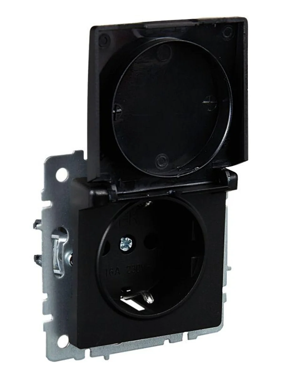 Розетка BRITE РСбш10-3-БрЧ 16А IP20 с заземл. защ. шторки с крышкой механизм черн. IEK BR-R16-16-K02 - купить в KeepBuilding | KeepBuilding