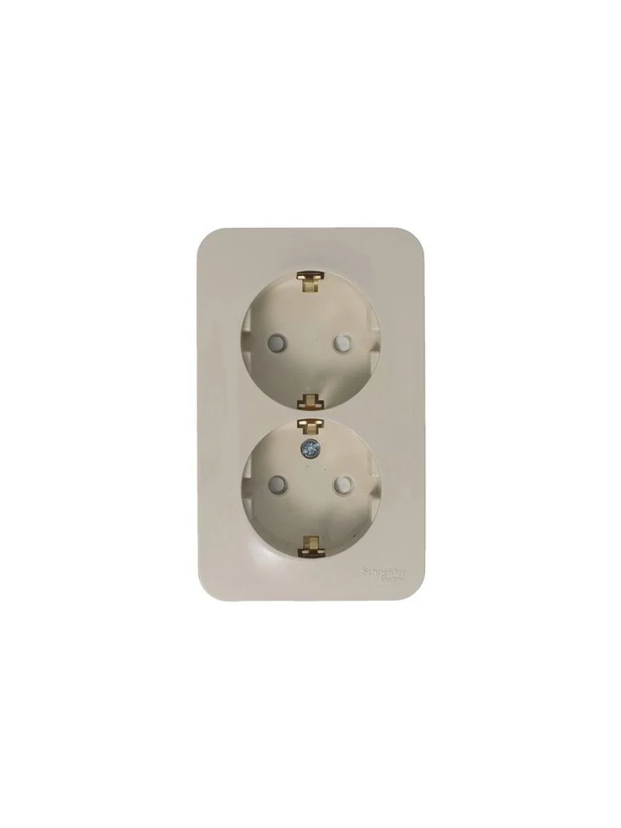 Розетка Systeme Electric (ранее Schneider Electric) BLANCA (открытой установки, цвет бежевый) двухместная с заземлением и шторками, с изолирующей пластиной подходит для сетей 250 В, на ток 16 А. Заземляющий контакт обеспечивает дополнительную защиту от удара электрическим током. При наличии заземления электрический потенциал уходит в землю, защищая человека. Корпус изделия выполнен из ABS-пластика.