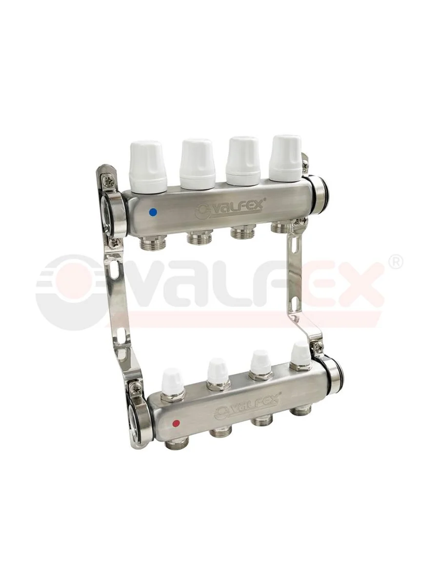 Блок коллекторов 1дюйм х 4 вых. евроконус 3/4дюйм с ручн. регулир. клапан. нерж. сталь (2) К VALFEX VF.582.0604