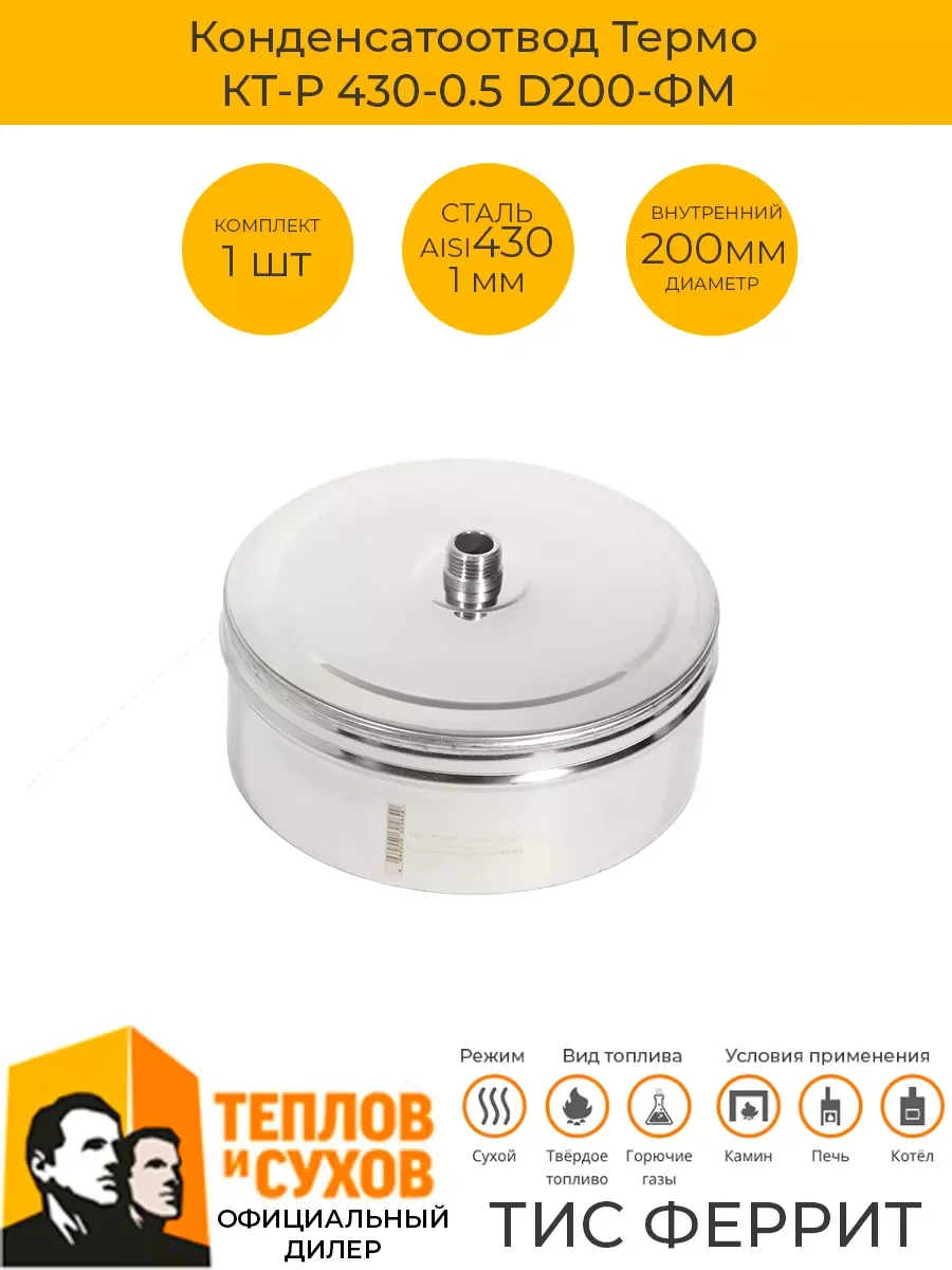 Устанавливается в нижней части дымохода для сбора конденсата. Конденсатоотвод состоит из трубного элемента, заглушенного пластиной с патрубком 10мм, соединенных между собой фальцевым соединением. Конденсатоотводы подбираются под системы Моно по номинальному диаметру, для системы Термо - по наружному диаметру. Конденсатоотвод закрепляется при помощи трубного хомута.