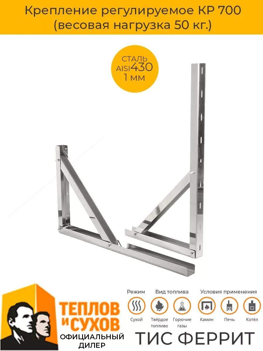 Консоли крепления являются силовыми элементами. Переносят вес вышерасположенной конструкции на стену здания. Используются в случаях, когда расстояние между опорной стеной здания и дымоходом в месте крепления превышает 60мм. Консоли представляют собой металлические кронштейны выполненные из профиля П - образного сечения. На кронштейнах крепится площадка монтажная, вертикальные элементы консолей имеют монтажные отверстия, благодаря чему максимальное расстояние дымохода от стены в месте крепления определяется только конфигурацией дымохода и ограничивается длиной горизонтального элемента.