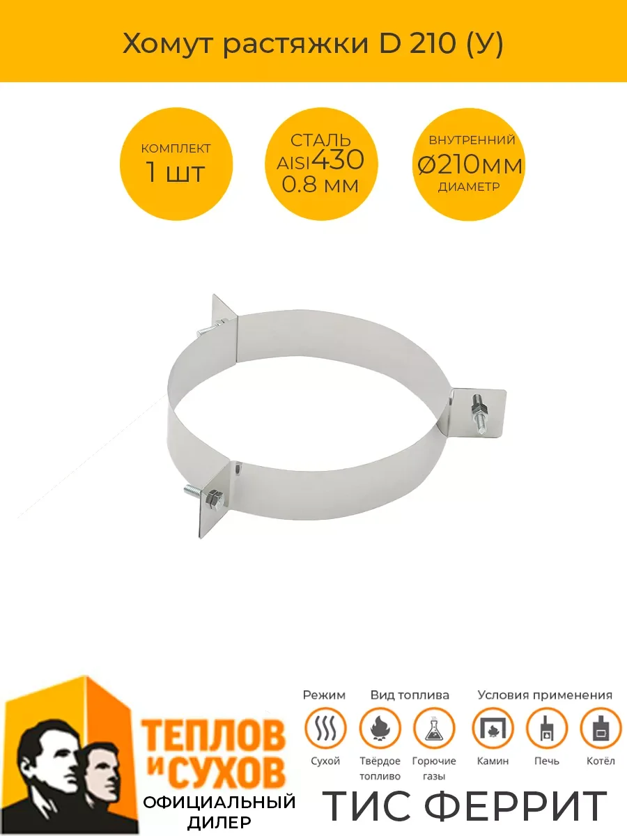 Не является силовым элементом и предназначен для фиксации в вертикальном положении дымохода, возвышающегося над кровлей более чем на 2 м.Представляет собой кольцевой ленточный элемент высотой 40 мм с петлями для закрепления стальных растяжек. Хомут растяжки трехсекторный,разъемный. Края хомута стягиваются с помощью болтов и гаек