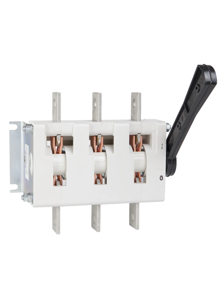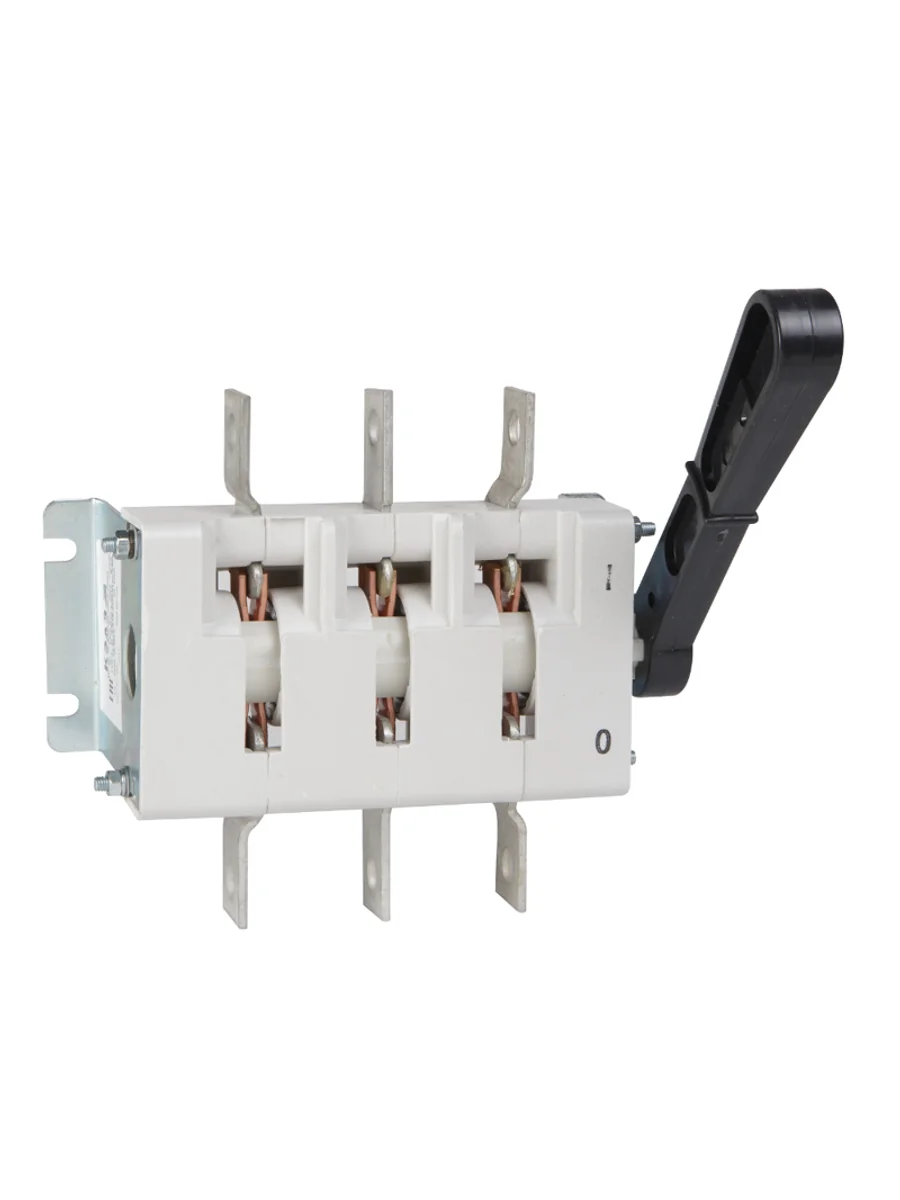 Выключатель-разъединитель 3 полюсный на номинальный ток 630 А, в котором установлена несъемная рукоятка.