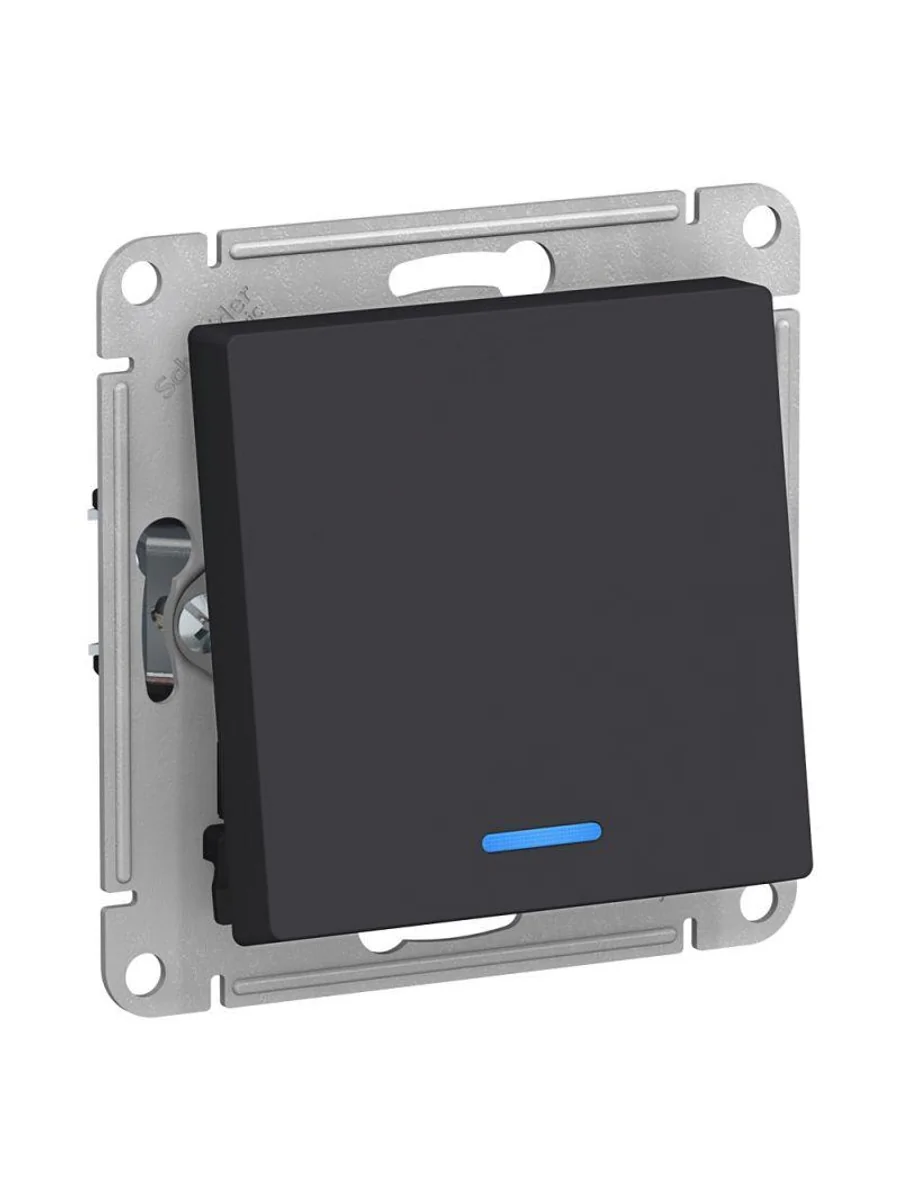 Механизм переключателя 1-клавишного с подсветкой Systeme Electric (ранее Schneider Electric) серии AtlasDesign в цвете карбон подходит для сетей 250 В, на ток 10 А. Благодаря светодиодной подсветке синего цвета изделие легко найти в темноте. Переключатель позволяют управлять одним источником света с двух точек. Лицевые детали из качественного ABS-пластика, устойчивого к царапинам и УФ-излучению. Благодаря покрытию «soft touch» к изделию приятно прикасаться.