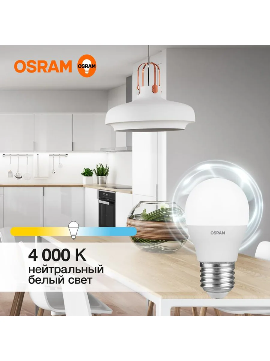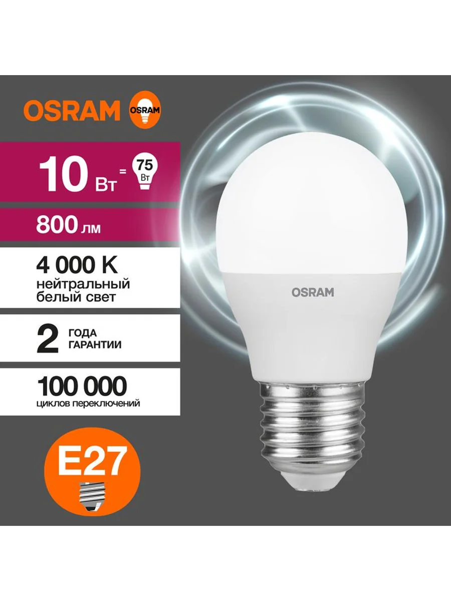 Светодиодные лампы OSRAM - разумная замена традиционным лампам накаливания или галогенным лампам. Светодиодные лампы OSRAM снижают затраты на освещение до 90% при сохранении привычного уровня освещенности. Эта лампа OSRAM серии LED Value выполнена в форме колбы P ("шарик") с цоколем E27. Материал колбы - пластик, исполнение - матовое. Световой поток 800 люмен, что соответствует лампе накаливания на 75 Вт. Такие лампы применяются для внутреннего освещения, хотя в закрытом светильнике можно использовать и на улице. Эта лампа излучает нейтральный белый свет, угол пучка - широкий. Качество света на высоте: низкие пульсации защищают глаза, а высокий индекс цветопередачи позволяет видеть мир в его истинном цвете. Кроме того, лампы OSRAM полностью безопасны для здоровья, поскольку в них нет опасных материалов по европейскому стандарту RoHS, а также они не производят вредных электромагнитных излучений, что подтверждено ЭМС (сертификат электромагнитной совместимости). Лампа проработает долго: срок службы - 25000 часов, 2 года гарантии. Светодиодные лампы OSRAM - умный выбор для здоровья семьи и кошелька!