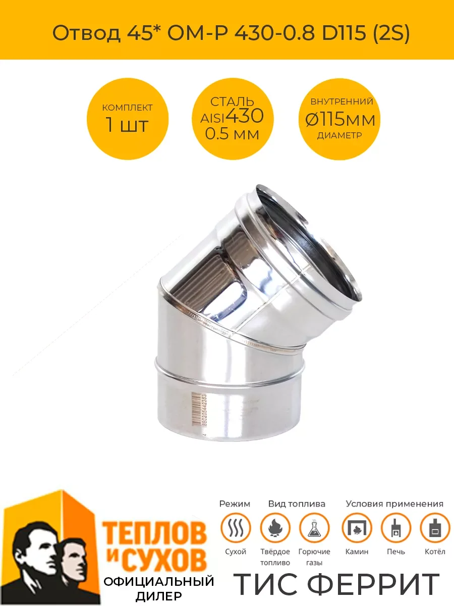 Отвод 45* ОМ-Р 430-0.8 D115 (2S)