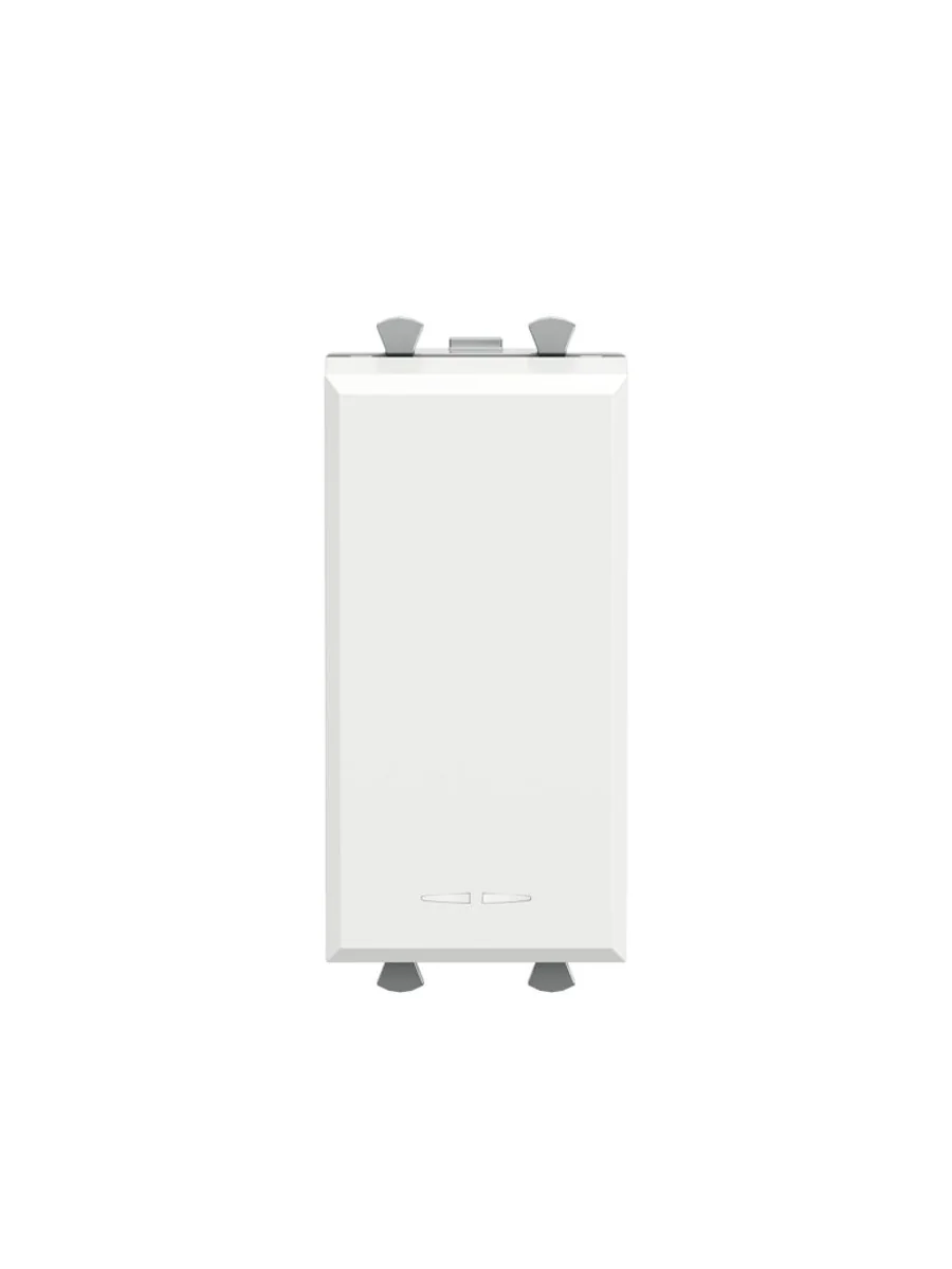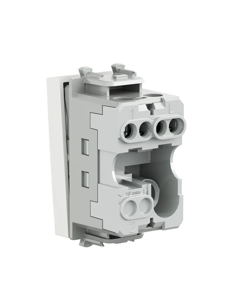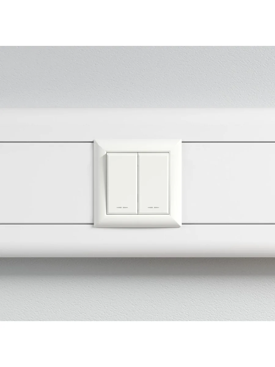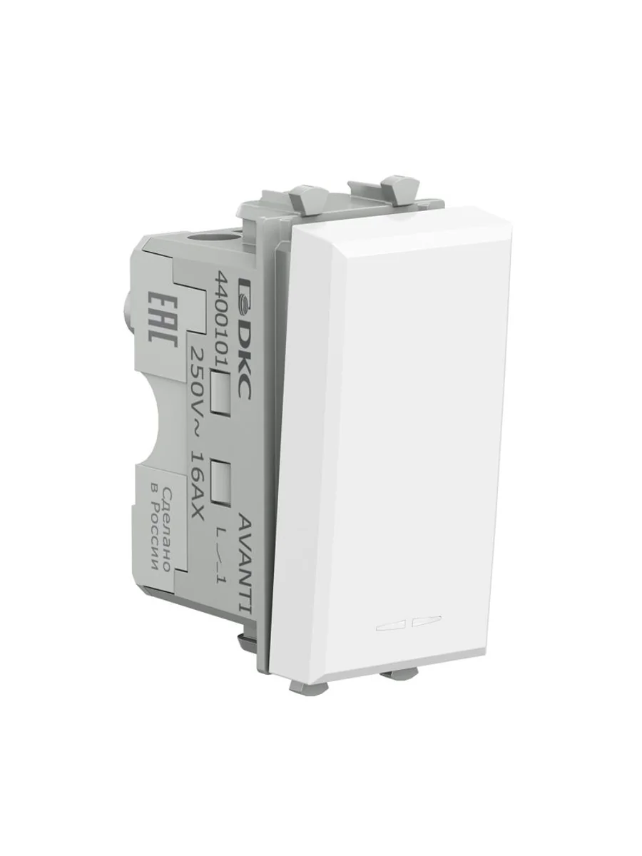 Выключатель одноклавишный однополюсный, модульный. Предназначен для монтажа в систему пластиковых коробов "In-liner Front" и систему организации рабочих мест "Sotto" при помощи рамок-суппортов и каркасов "Avanti" (код 4400912 и т.д.); используется для включения/выключения освещения. Характеристики: диаметр отверстий для ввода кабелей – 3 мм (по 2 отверстия на одну клемму); винтовые зажимы; шаблон для зачистки кабеля – 11 мм; номинальный ток – 16 A; номинальное напряжение – 230 В; возможна фиксация в подрозеточные коробки при помощи каркаса с лапками (код 4400802) и саморезов. 1 модуль. Цвет: "Белое облако". Производитель оставляет за собой право вносить во внешний вид изделия изменения, которые не влияют на его функционал, безопасность и надежность.