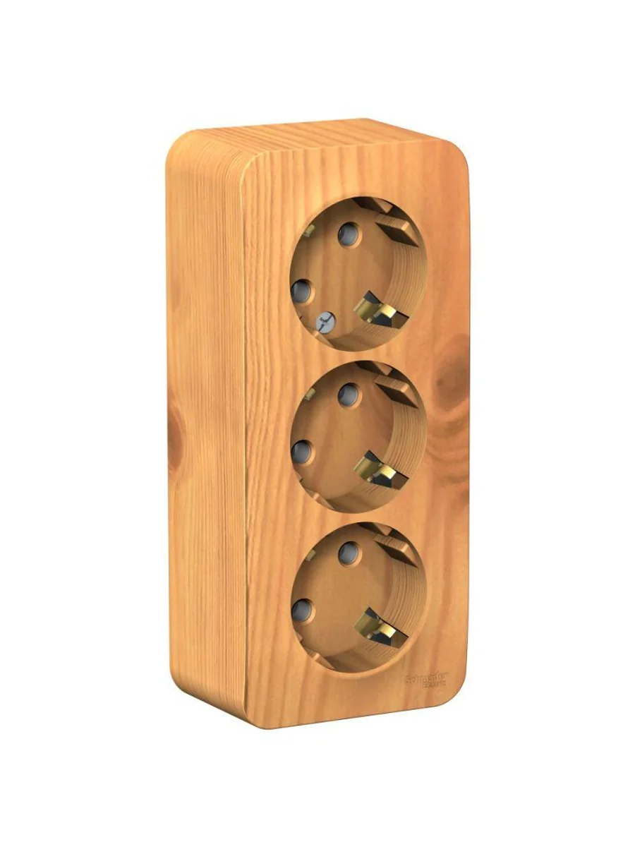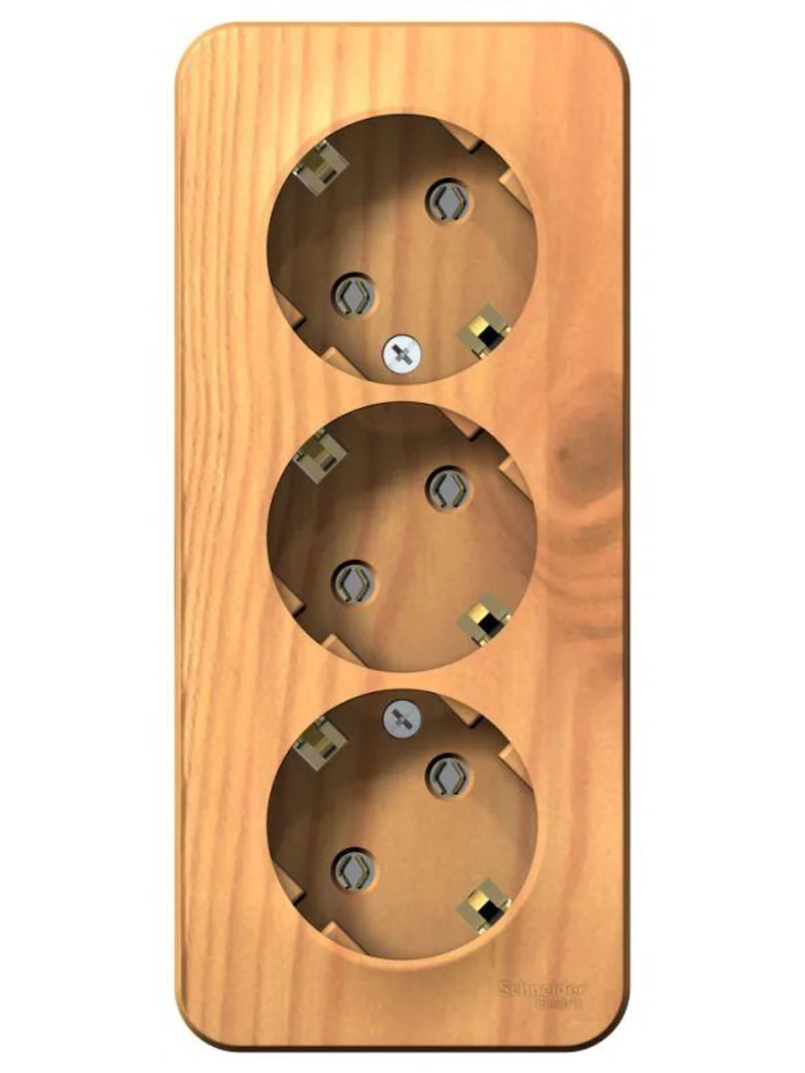 Розетка Systeme Electric (ранее Schneider Electric) BLANCA (ясень, открытой установки) трехместная, без шторок, с заземлением и изолирующей пластиной предназначена для сетей до 250В, на ток до 16А. Трехместная розетка позволяет подключить три устройства в одном месте. Заземление обеспечивает безопасность при косвенном прикосновении. Изделия цвета Ясень обладают уникальным рисунком, напоминающим древесный сруб. Она изготовлена из ABS-пластика, проста в установке и удобна в применении.