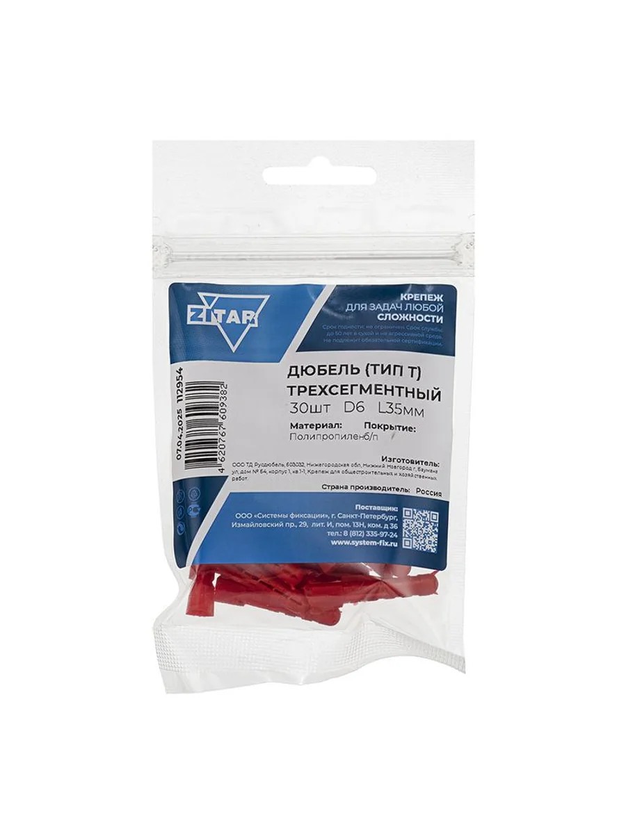 Дюбель распорный трехсегментный применяется для крепления конструкций небольшого веса к плотным основаниям: бетон, полнотелый кирпич, природный камень. Изготовлен из полипропилена красного цвета. Конструкция дюбеля обеспечивает надежную фиксацию в материале основания. Используется совместно с универсальными шурупами, сантехническими болтами, шпилькой-шурупом и т.д. Устанавливается в предварительно просверленное отверстие.