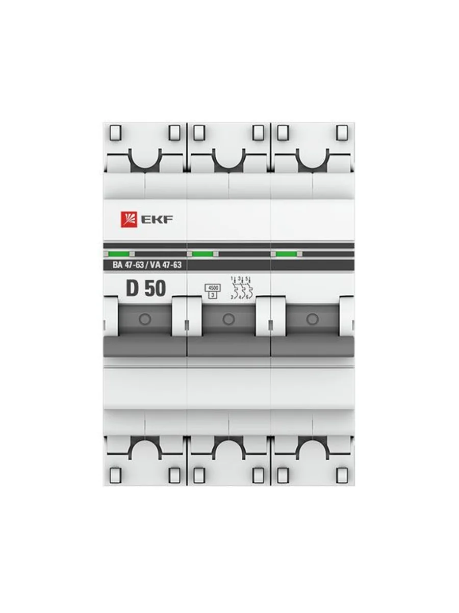 Выключатель автоматический модульный 3п D 50А 4.5кА ВА 47-63 PROxima EKF mcb4763-3-50D-pro - купить в KeepBuilding | KeepBuilding