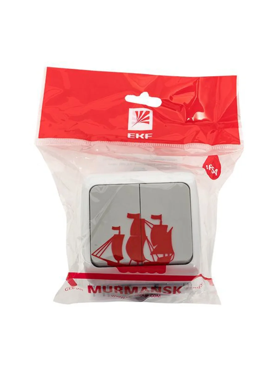 Выключатель двухклавишный EKF серии Мурманск позволяет организовать электроснабжение в условиях высокой влажности и пыльных помещениях, на улице при условии установки под навесом. Ступенчатые герметичные вводы с двух сторон изделия обеспечивают надежную защиту, позволяя использовать устройство в агрессивных условиях.