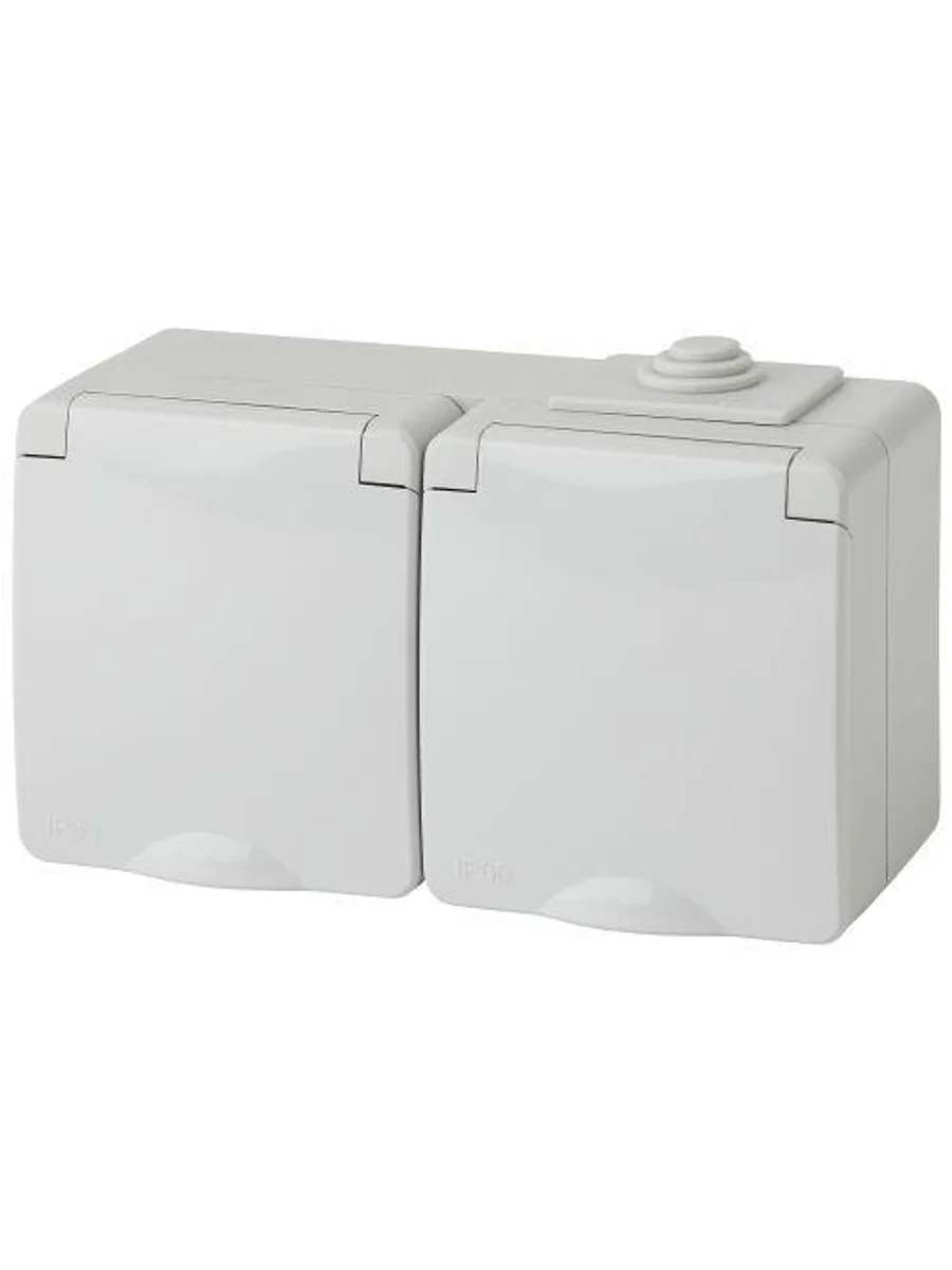 Розетка двойная горизонтальная IP65 с крышкой серии Эра Эксперт открытой установки цвет белый 11-2603-03. Номинальные характеристики 16А 250В. Устройство выполнено из качественного поликарбоната, оснащёно уникальными винтовыми клеммами ЭКСПЕРТ для максимально качественного зажима кабеля в механизме.