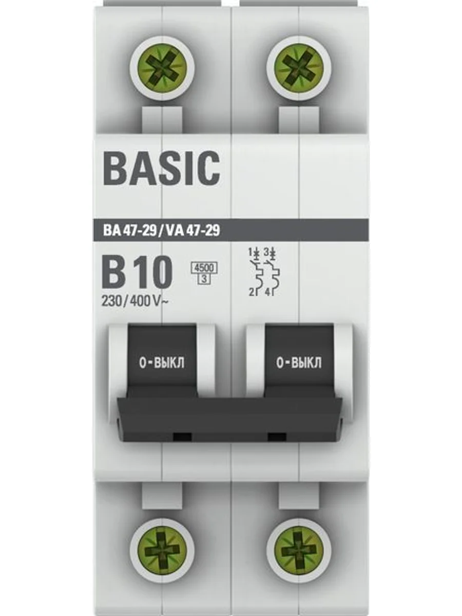 Выключатель автоматический модульный 2п B 10А 4.5кА ВА 47-29 Basic EKF mcb4729-2-10-B - купить в KeepBuilding | KeepBuilding