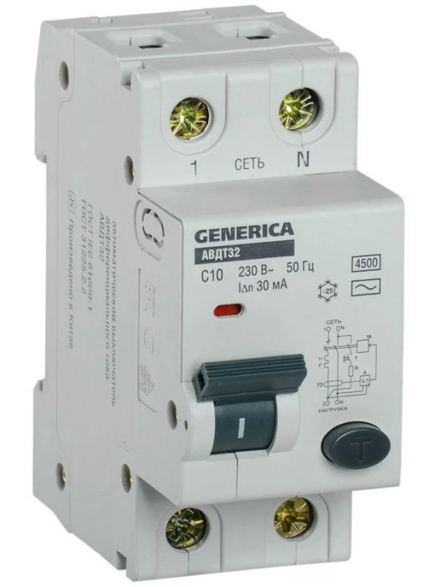 Выключатель автоматический дифференциального тока C10 30мА АВДТ 32 GENERICA MAD25-5-010-C-30 - купить в KeepBuilding | KeepBuilding