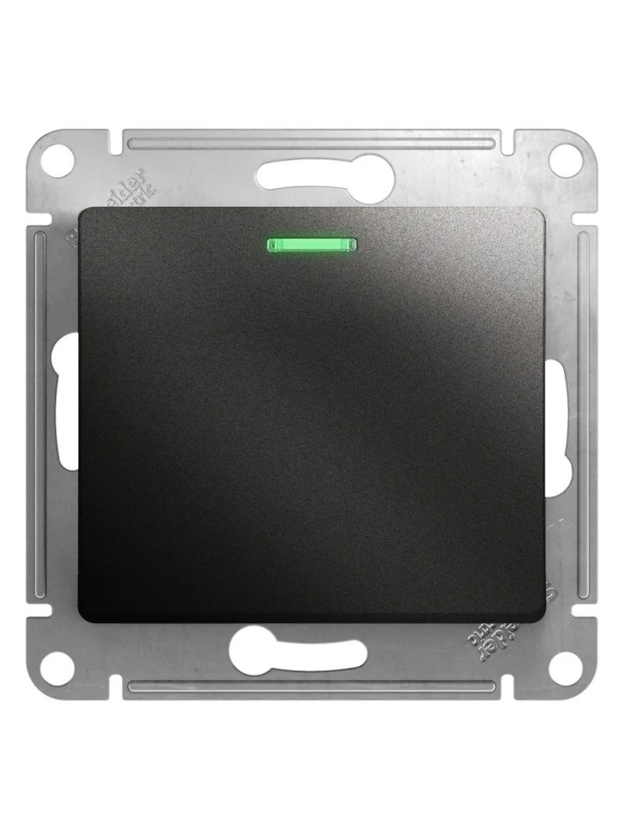 Механизм Systeme Electric серии Glossa (цвет антрацит) переключателя 1-клавишного с подсветкой подходит для сетей 250 В, на ток 10 А. - Благодаря современной светодиодной подсветке зеленого цвета изделие легко найти в темноте. - Переключатель позволяют управлять одним источником света с двух точек. - Выполнен из материала PС+ASA, стойкого к УФ-излучению и появлению царапин. - Эргономичные клеммы расположены в два ряда: сверху и снизу (ранее Schneider Electric MGU5.492.12ZD, NU520354N).