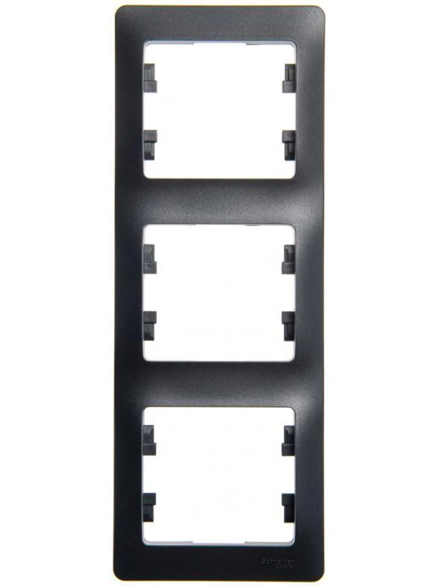 Рамка Systeme Electric (ранее Schneider Electric) серии Glossa (цвет антрацит) трёхместная. - Устанавливается в вертикальном положении. - Выполнена из материала PС+ASA, стойкого к УФ-излучению и появлению царапин. - Позволяет гармонично вписать электроустановочное изделие в интерьер помещения.