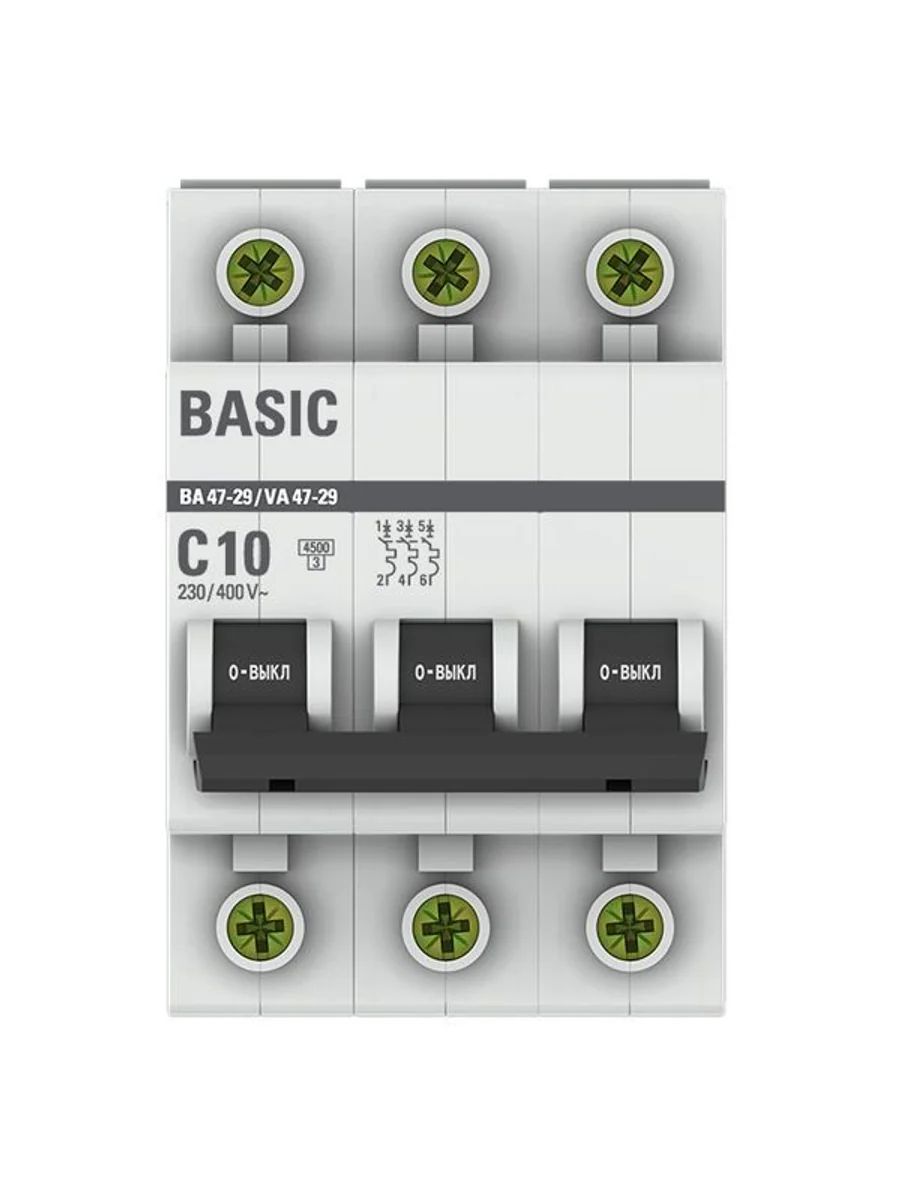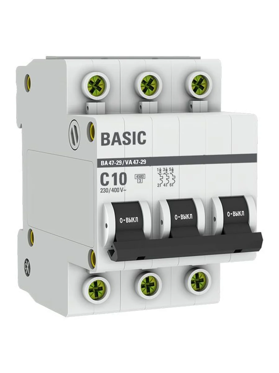 Выключатель автоматический модульный 3п C 10А 4.5кА ВА 47-29 Basic EKF mcb4729-3-10C - купить в KeepBuilding | KeepBuilding