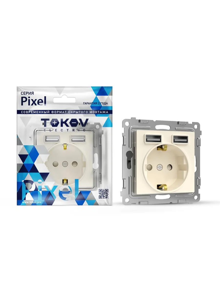 Розетка 1-м СП Pixel с заземл. с 2-мя заряд. устр. USB тип A+A механизм беж. TOKOV ELECTRIC TKE-PX-R1U2A-C02 - купить в KeepBuilding | KeepBuilding