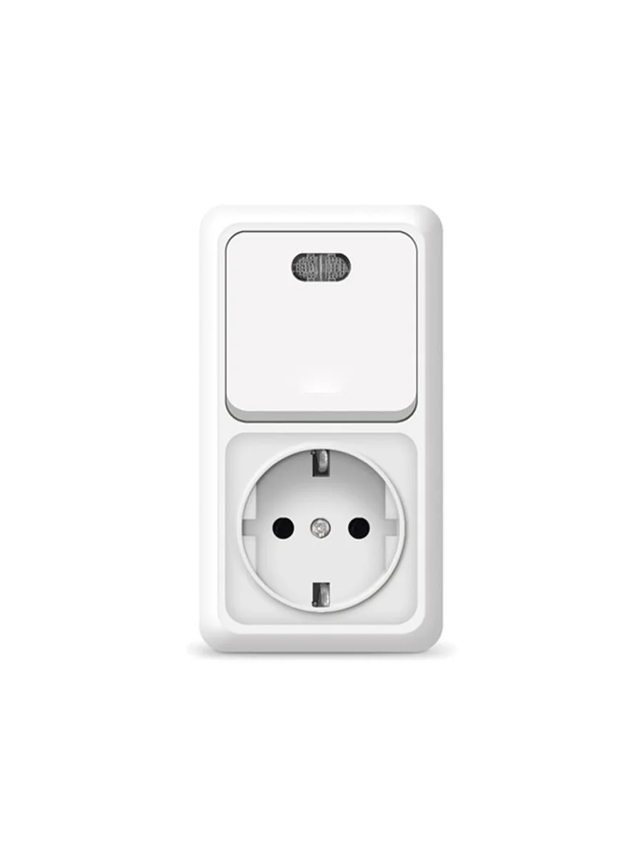Блок ОП Олимп 1-кл. вык. с подсветкой + роз. с заземл. верт. бел. UNIVersal О0039 представлен потребителю в серии "Олимп". Серия "Олимп" для открытой установки сочетает в себе функциональность с практичностью. Изделия данной серии удачно вписываются в интерьер любого помещения и производят приятное впечатление. Блок объединяет одноклавишный выключатель и розетку. Корпус представляет собой форму из пластика, белого цвета. Контактная группа изделий изготовлена из латуни. Монтируется вертикально, на глубину 48 мм, на поверхность стены. Рекомендованы для жилых помещений и административных зданий. Срок службы составляет 5 000 циклов включения/отключения.