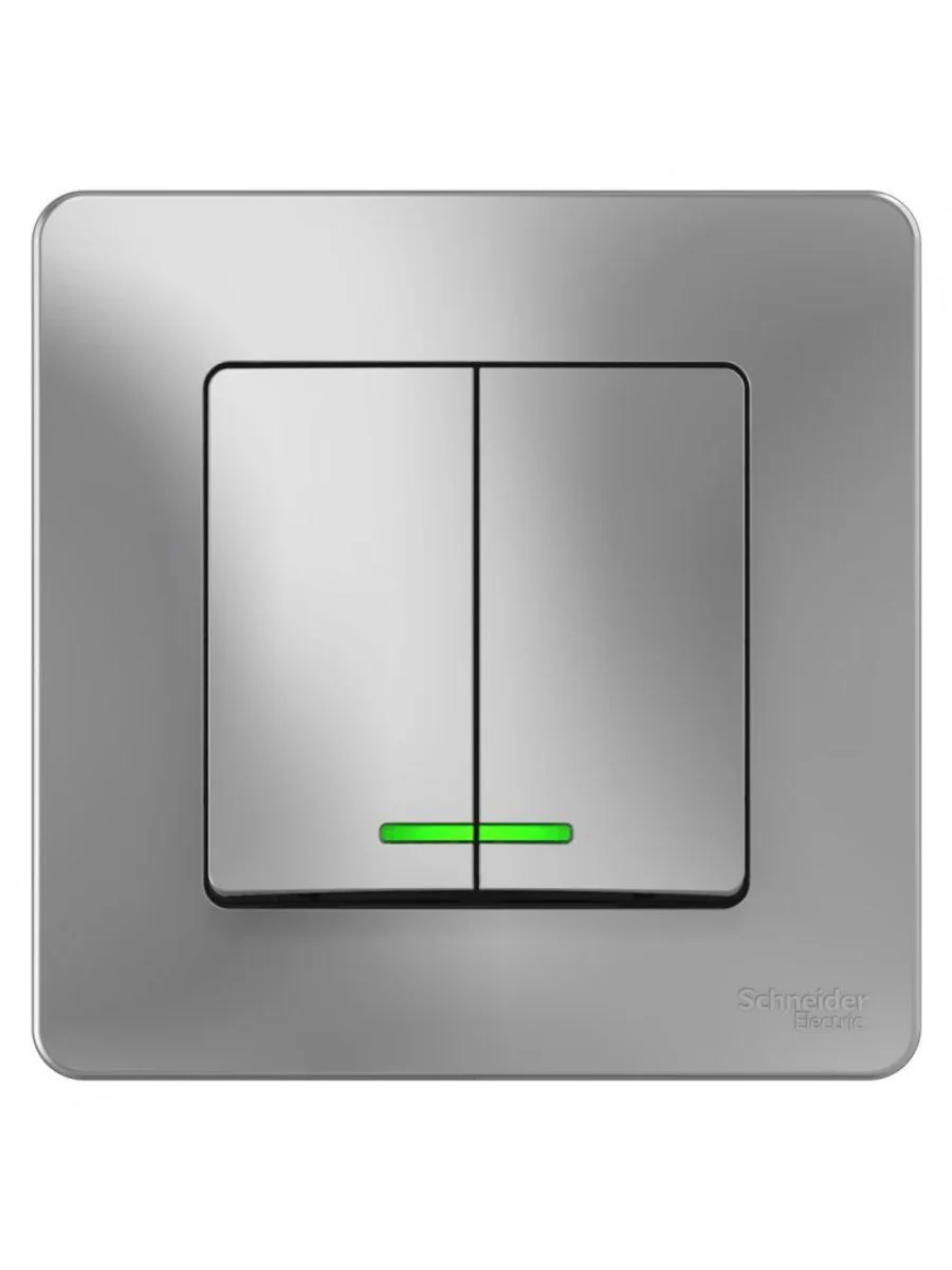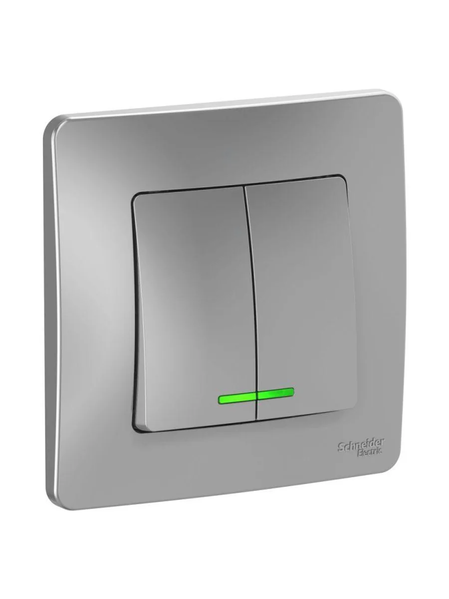 Выключатель Systeme Electric (ранее Schneider Electric) BLANCA (алюминий, скрытой установки) двухклавишный предназначен для сетей до 250В, на ток до 10А. Подсветка делает его легко находимым в отсутствие освещения. Двухклавишный выключатель позволяет управлять двумя источниками света из одной точки.
