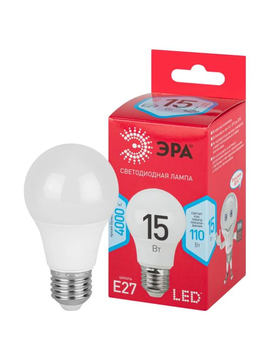 Лампа светодиодная RED LINE LED A60-15W-840-E27 R 15Вт A60 груша 4000К нейтр. бел. E27 Эра Б0046356 - купить в KeepBuilding | KeepBuilding