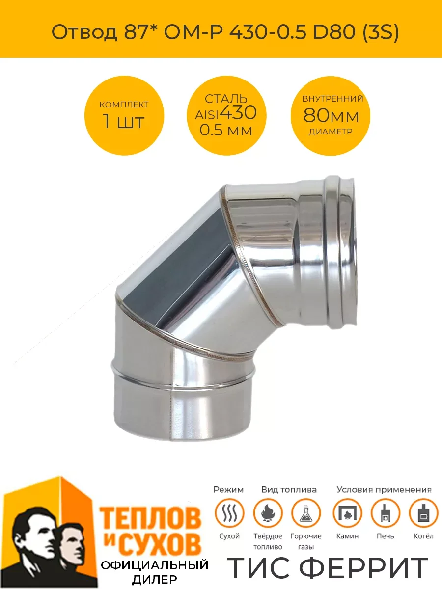 Отвод Моно предназначен для изменения направления неутепленного дымового канала на 87*