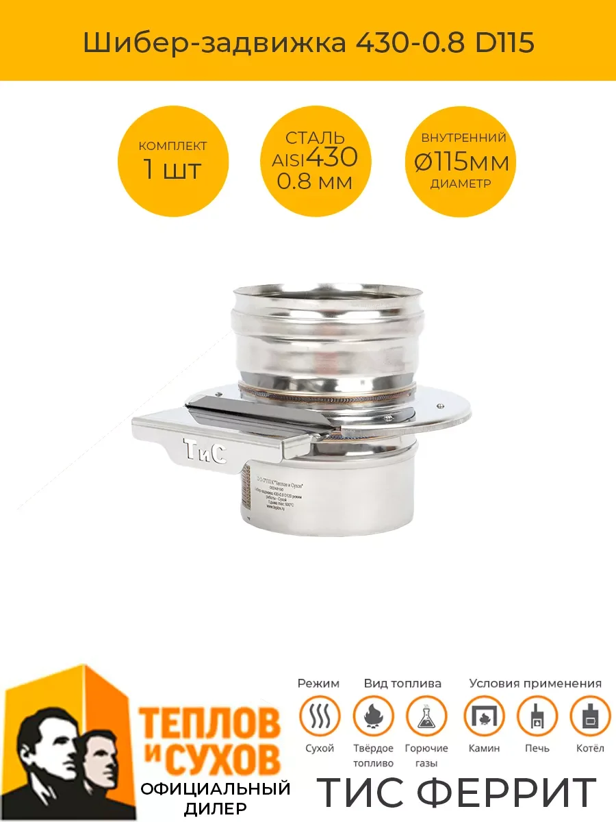 Шибер используется для регулирование тяги, путем частичного перекрытия дымового канала, а также в качестве заслонки на неэксплуатируемом камине с открытой топкой для предотвращения оттока теплового воздуха из помещения через дымоход. Представляет собой трубу с вмонтированной поворотной заслонкой – диффузором выведенной наружу рукояткой – штоком.