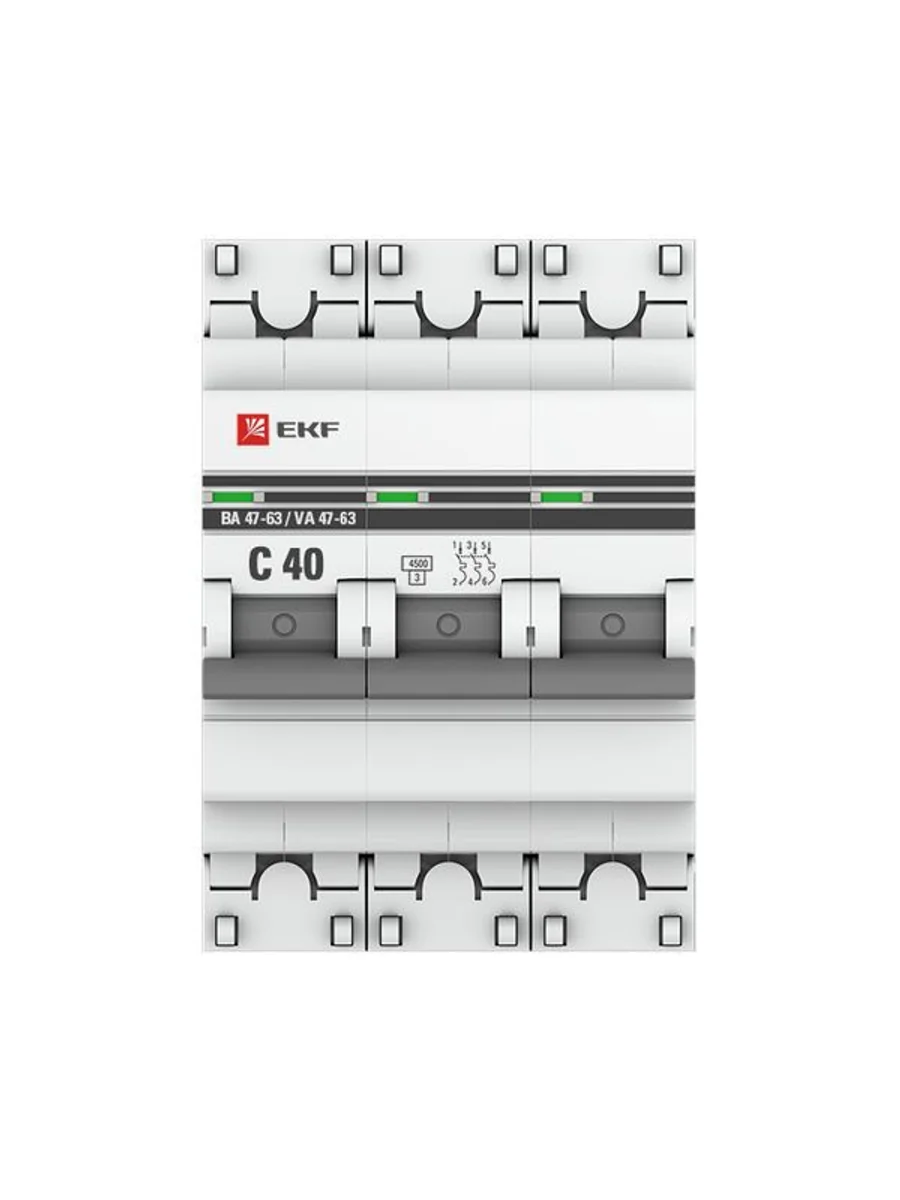 Выключатель автоматический модульный 3п C 40А 4.5кА ВА 47-63 PROxima EKF mcb4763-3-40C-pro - купить в KeepBuilding | KeepBuilding