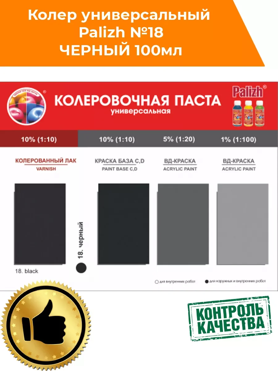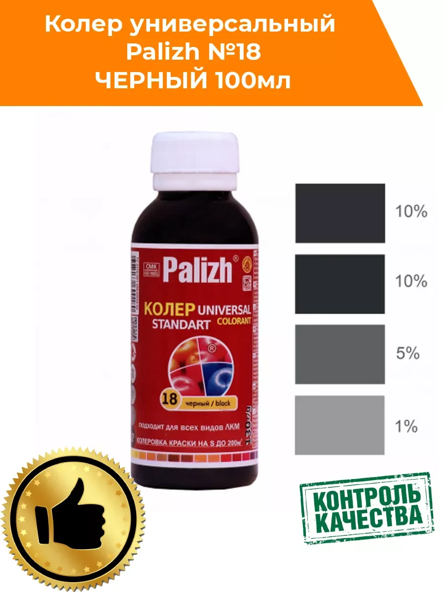 Универсальная колеровочная паста "Palizh" STANDART предназначена для колерования воднодисперсионных, алкидных (ПФ) лакокрасочных материалов: краски, лаки, эмали, шпатлевки, затирки, пропитки, грунтовки, штукатурки, гипсовые смеси. Не применять для колерования составов, содержащих масла и воски. Насыщенность цвета можно регулировать в процессе смешивания. Колеровка не изменяет первоначальных свойств краски (при соблюдении рекомендованного процента ввода) .Инструмент легко очищается водой. Не использовать как самостоятельный продукт. Для получения ярких оттенков используйте краски, эмали с обозначением База С ( D) или лаки. Храните в сухом помещении при температуре от +5 до + 30°С. Срок годности в невскрытой таре производителя - 36 мес.